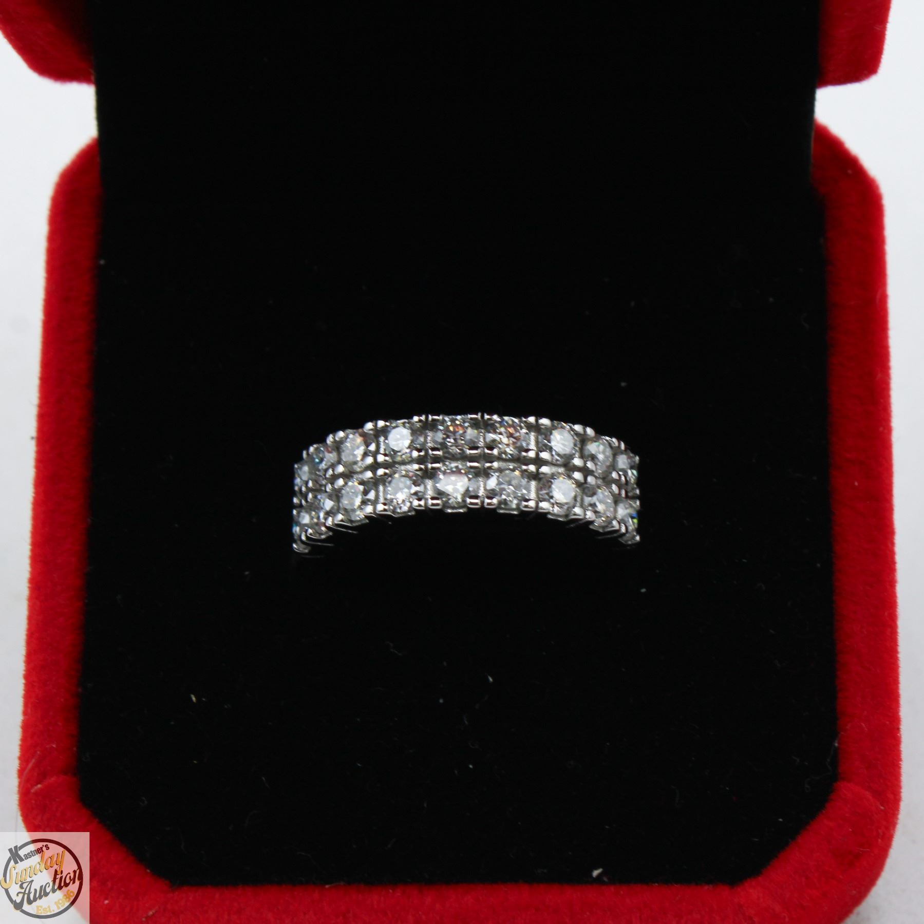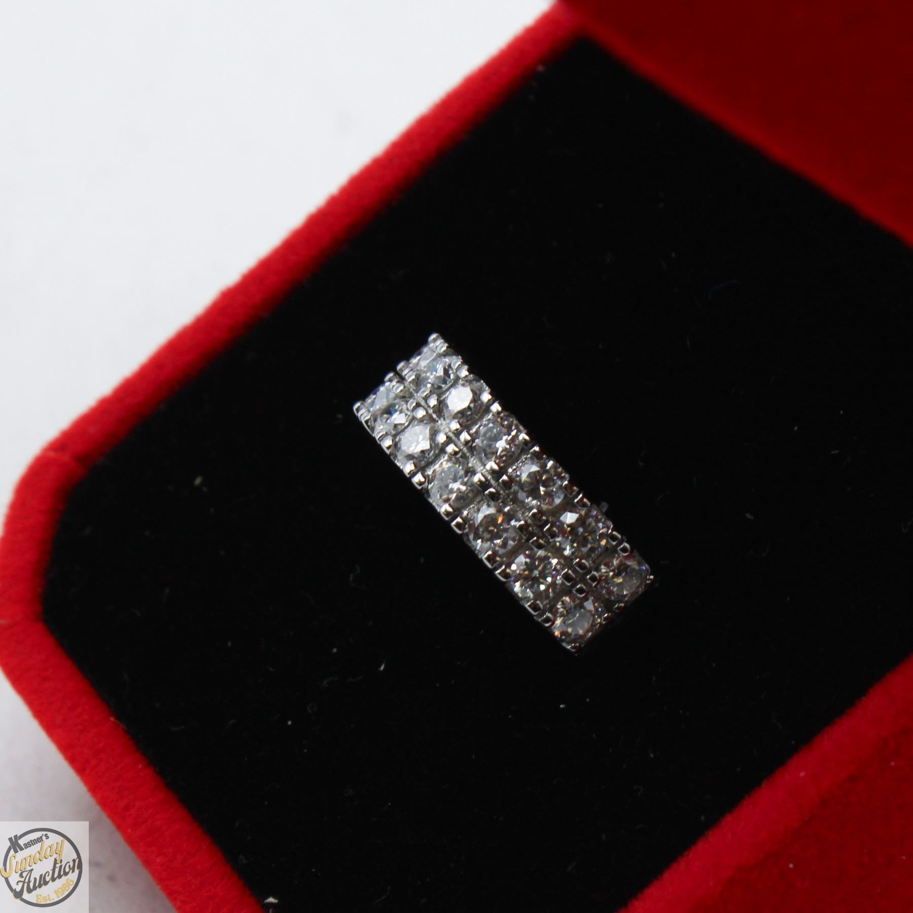 MOISSANITE STONES VVS D COLOR WITH THE 18 ROUND BRILLIANT CUT MOISSANITE SET IN 2 ROWS SET IN 925 SILVER RING SIZE 6 RETAIL VALUE $850.00 **ALL ITEMS MUST BE REMOVED BY 5PM SATURDAY, JANUARY 17TH 2026. ALL REMAINING ITEMS WILL BE SUBJECT TO A $6.00 PER DAY STORAGE CHARGE. ANY ITEMS REMAINING AFTER MONDAY, FEBRUARY 2ND 2026 WILL BE CONSIDERED FORFEITED. NO REFUNDS WILL BE ISSUED FOR FORFEITED ITEMS. TO SCHEDULE A PICK UP APPOINTMENT CLICK HERE