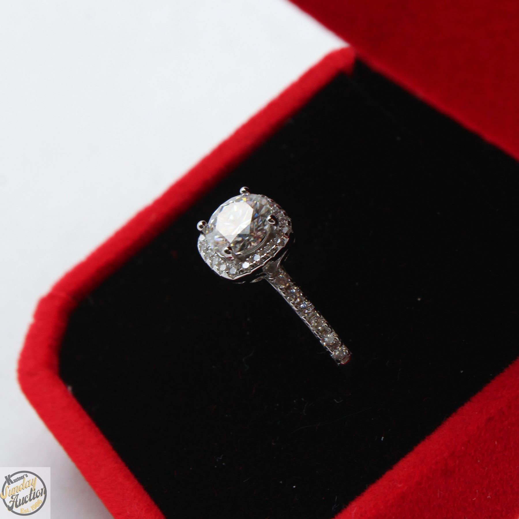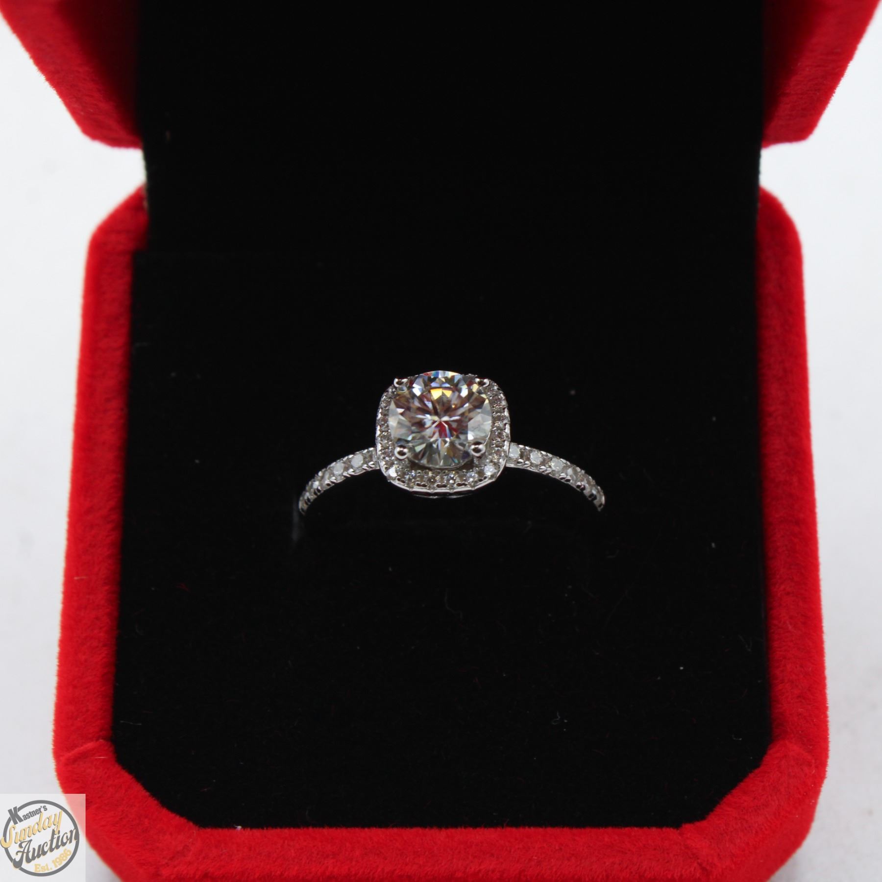 MOISSANITE STONE VVS D COLOR WITH 32 ROUND BRILLIANT CUT CUBIC ZIRCONIA SET IN SQUARE SHAPED HALO AND SET IN SHANKS SET IN 925 SILVER RING SIZE 6.25 **ALL ITEMS MUST BE REMOVED BY 5PM SATURDAY, JANUARY 17TH 2026. ALL REMAINING ITEMS WILL BE SUBJECT TO A $6.00 PER DAY STORAGE CHARGE. ANY ITEMS REMAINING AFTER MONDAY, FEBRUARY 2ND 2026 WILL BE CONSIDERED FORFEITED. NO REFUNDS WILL BE ISSUED FOR FORFEITED ITEMS. TO SCHEDULE A PICK UP APPOINTMENT CLICK HERE