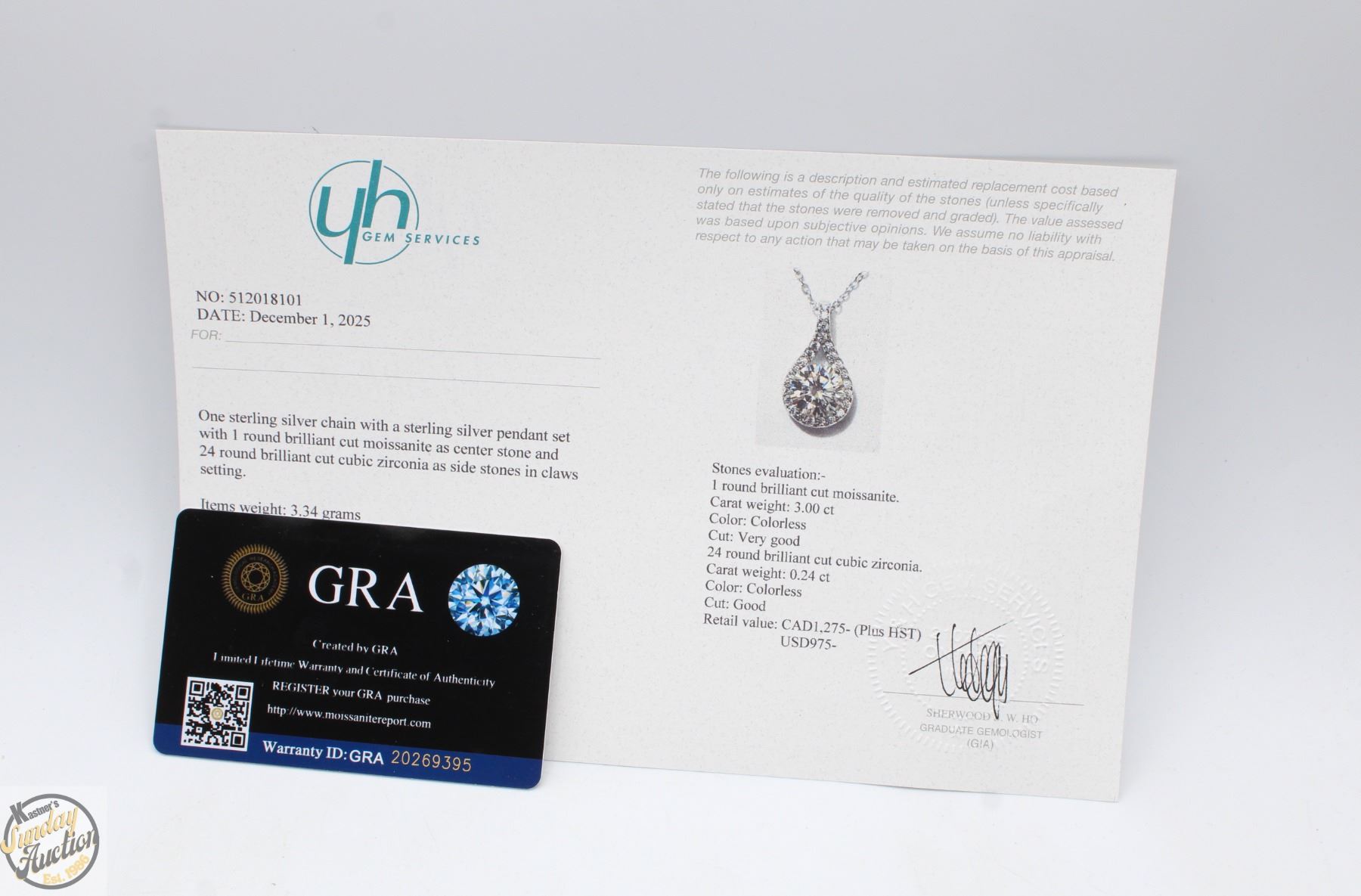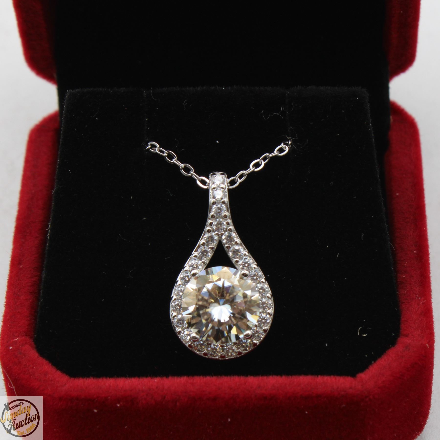 MOISSANITE STONE VVS D COLOR WITH 24 ROUND BRILLIANT CUT CUBIC ZIRCONIA SET IN TEAR DROP HALO SET IN 925 SILVER PENDANT RETAIL VALUE $1,275.00 **ALL ITEMS MUST BE REMOVED BY 5PM SATURDAY, JANUARY 17TH 2026. ALL REMAINING ITEMS WILL BE SUBJECT TO A $6.00 PER DAY STORAGE CHARGE. ANY ITEMS REMAINING AFTER MONDAY, FEBRUARY 2ND 2026 WILL BE CONSIDERED FORFEITED. NO REFUNDS WILL BE ISSUED FOR FORFEITED ITEMS. TO SCHEDULE A PICK UP APPOINTMENT CLICK HERE