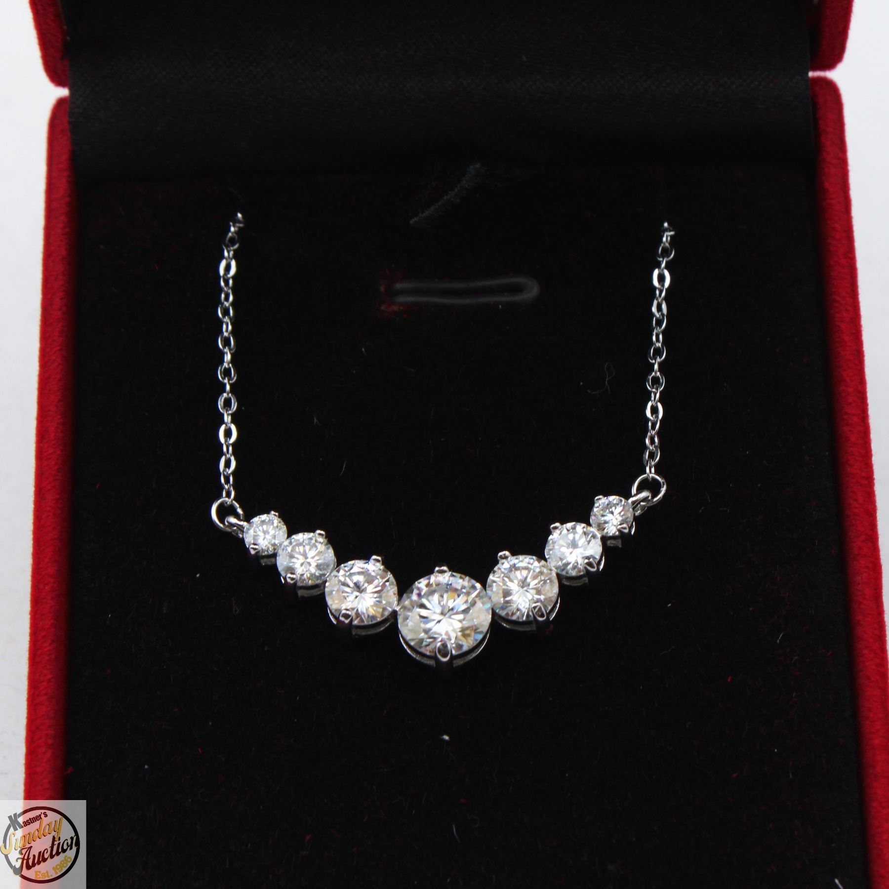 MOISSANITE STONES VVS D COLOR WITH THE 7 MOISSANITE STONES GRADUATING FROM THE LARGER CENTER ON EACH SIDE SET IN 925 SILVER PENDANT RETAIL VALUE $1,100.00 **ALL ITEMS MUST BE REMOVED BY 5PM SATURDAY, JANUARY 17TH 2026. ALL REMAINING ITEMS WILL BE SUBJECT TO A $6.00 PER DAY STORAGE CHARGE. ANY ITEMS REMAINING AFTER MONDAY, FEBRUARY 2ND 2026 WILL BE CONSIDERED FORFEITED. NO REFUNDS WILL BE ISSUED FOR FORFEITED ITEMS. TO SCHEDULE A PICK UP APPOINTMENT CLICK HERE