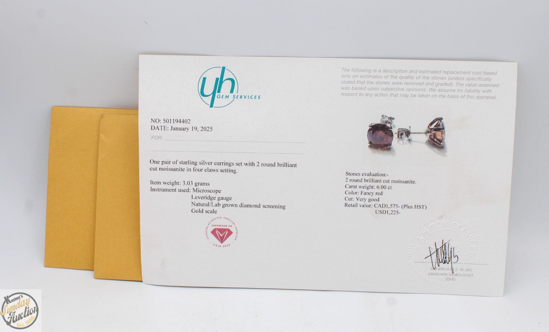 MOISSANITE STONES VVS FANCY RED COLOR SET IN 4 CLAW V SHAPED HEAD SET IN 925 SILVER EARRINGS RETAIL VALUE $1,575.00 **ALL ITEMS MUST BE REMOVED BY 5PM SATURDAY, JANUARY 31ST 2026, ALL REMAINING ITEMS WILL BE SUBJECT TO A $6.00 PER DAY STORAGE CHARGE. ANY ITEMS REMAINING AFTER MONDAY, FEBURARY 16TH 2026, WILL BE CONSIDERED FORFEITED. NO REFUNDS WILL BE ISSUED FOR FORFEITED ITEMS. TO SCHEDULE A PICK UP APPOINTMENT CLICK HERE