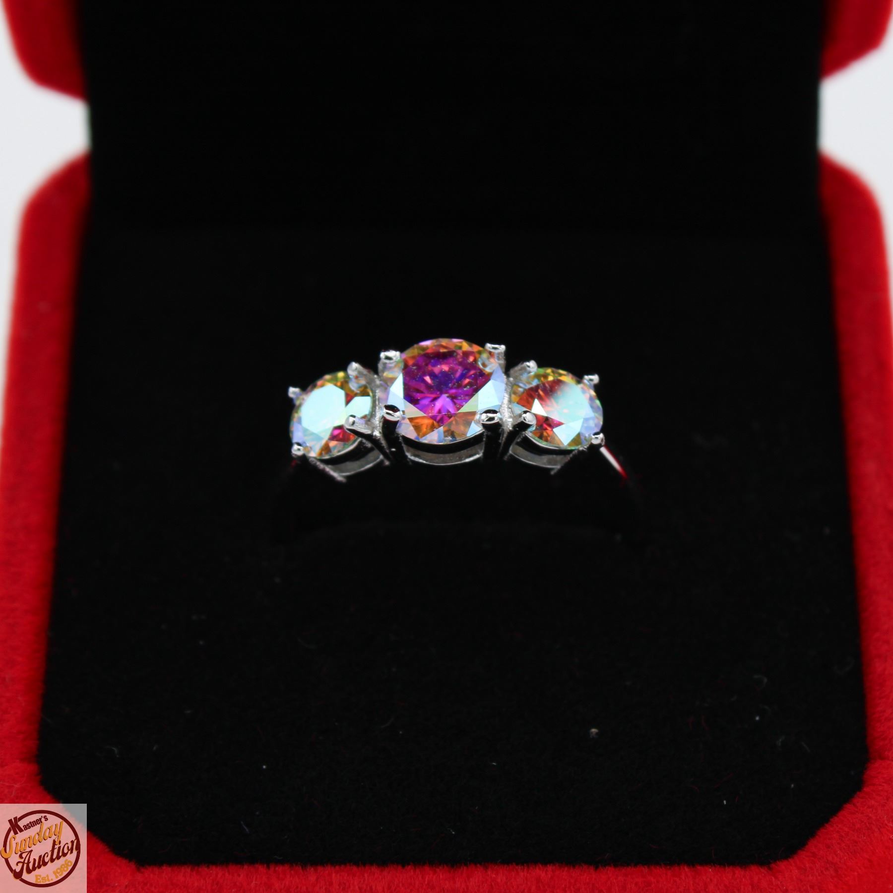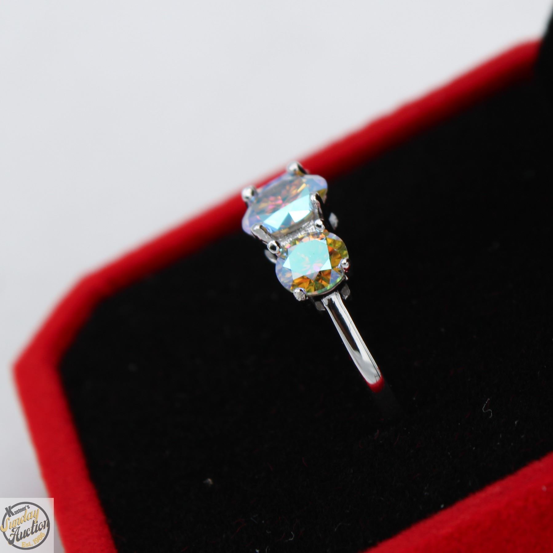 CUT MOISSANITE STONES VVS RAINBOW COLOR WITH 1.00 SET IN CENTER WITH 0.50 SET ON EITHER SIDE SET IN 925 SILVER RING SIZE 7.25 **ALL ITEMS MUST BE REMOVED BY 5PM SATURDAY, FEBRUARY 7TH 2025. ALL REMAINING ITEMS WILL BE SUBJECT TO A $6.00 PER DAY STORAGE CHARGE. ANY ITEMS REMAINING AFTER MONDAY, FEBRUARY 23RD 2025 WILL BE CONSIDERED FORFEITED. NO REFUNDS WILL BE ISSUED FOR FORFEITED ITEMS. TO SCHEDULE A PICK UP APPOINTMENT CLICK HERE
