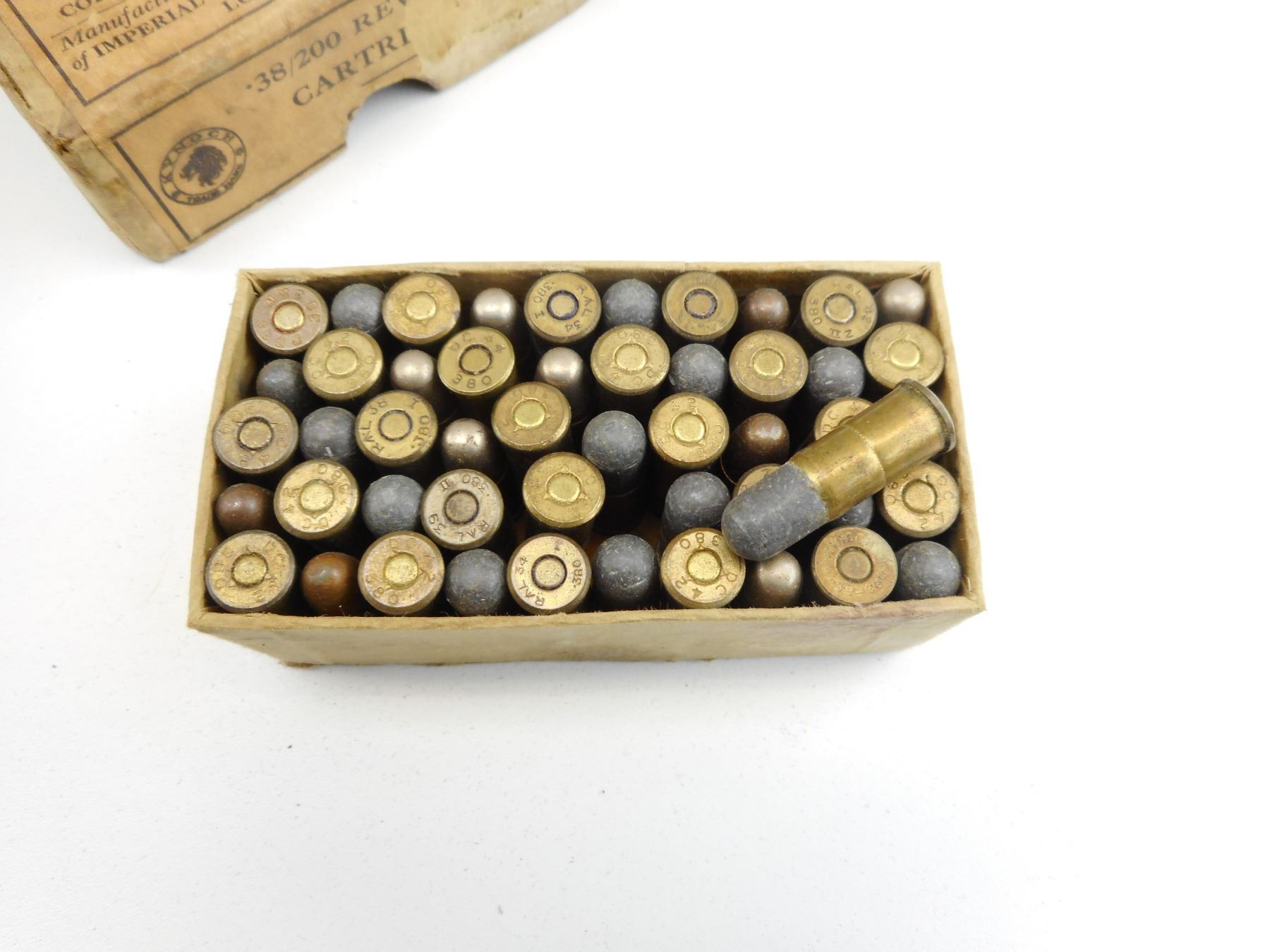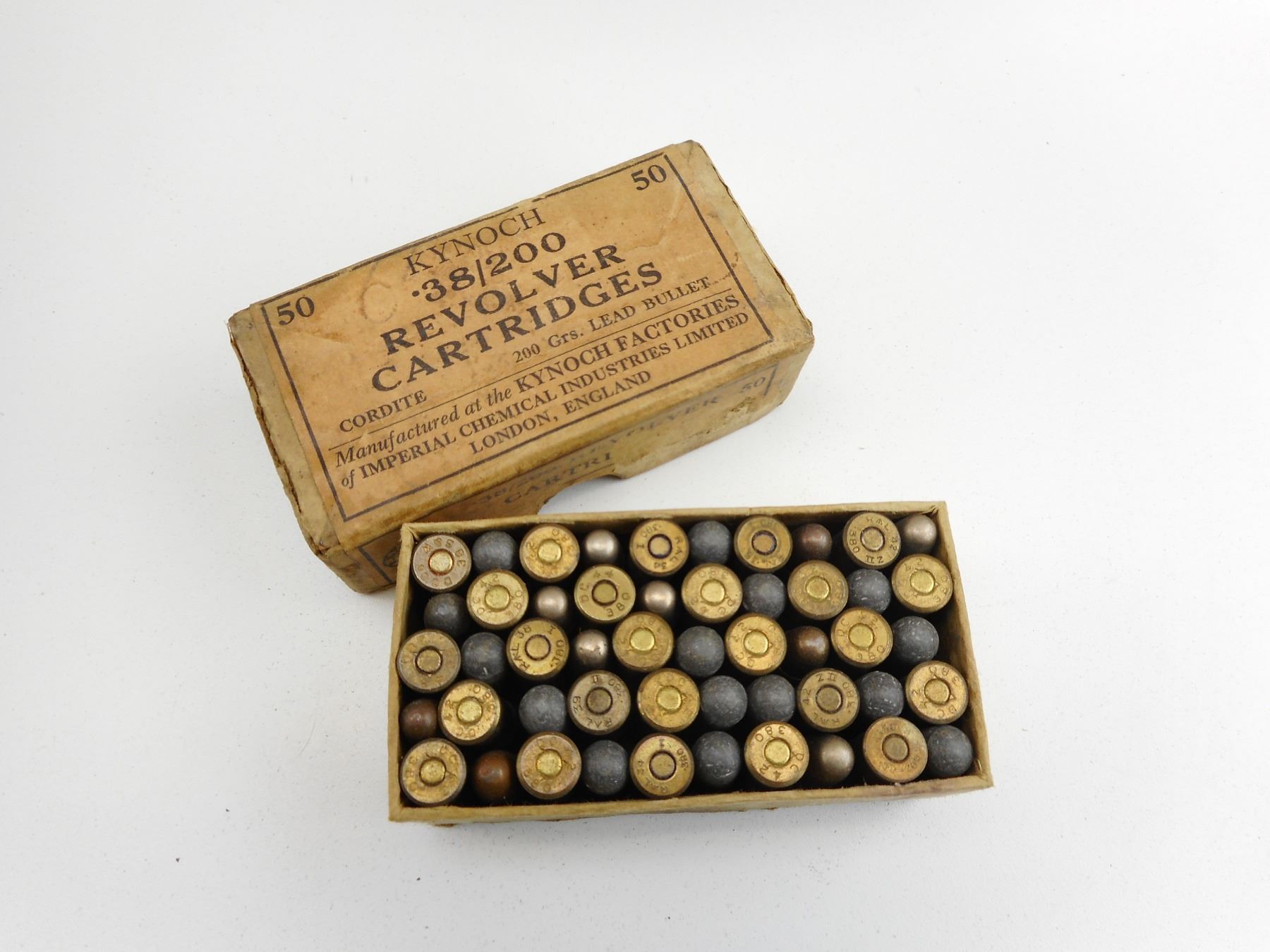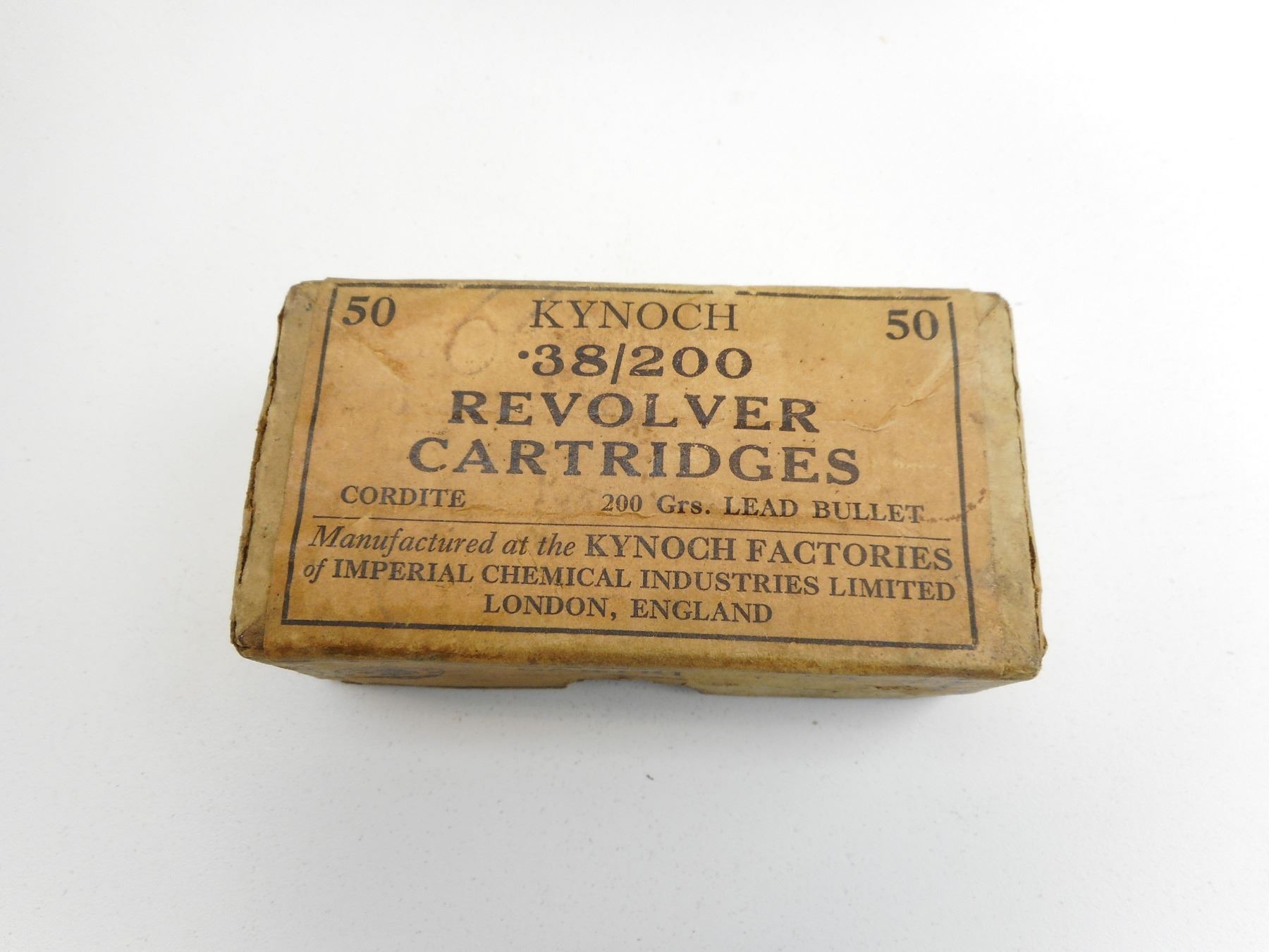.38/200 MILITARY AMMO , 50 RNDS .38/200 KYNOCH MILITARY IN VINTAGE KYNOCH BOX