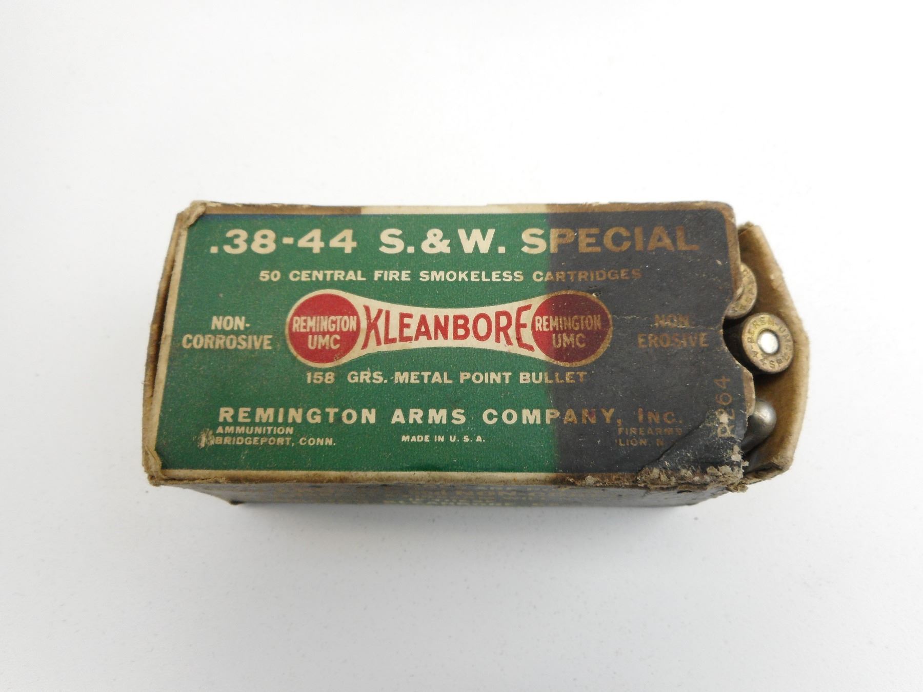 38-44 S & W SPECIAL BY REM-UMC AMMO , 50 RNDS .38-44 S & W SPECIAL, FMJ IN VINTAGE REMINGTON-KLEANBORE BOX