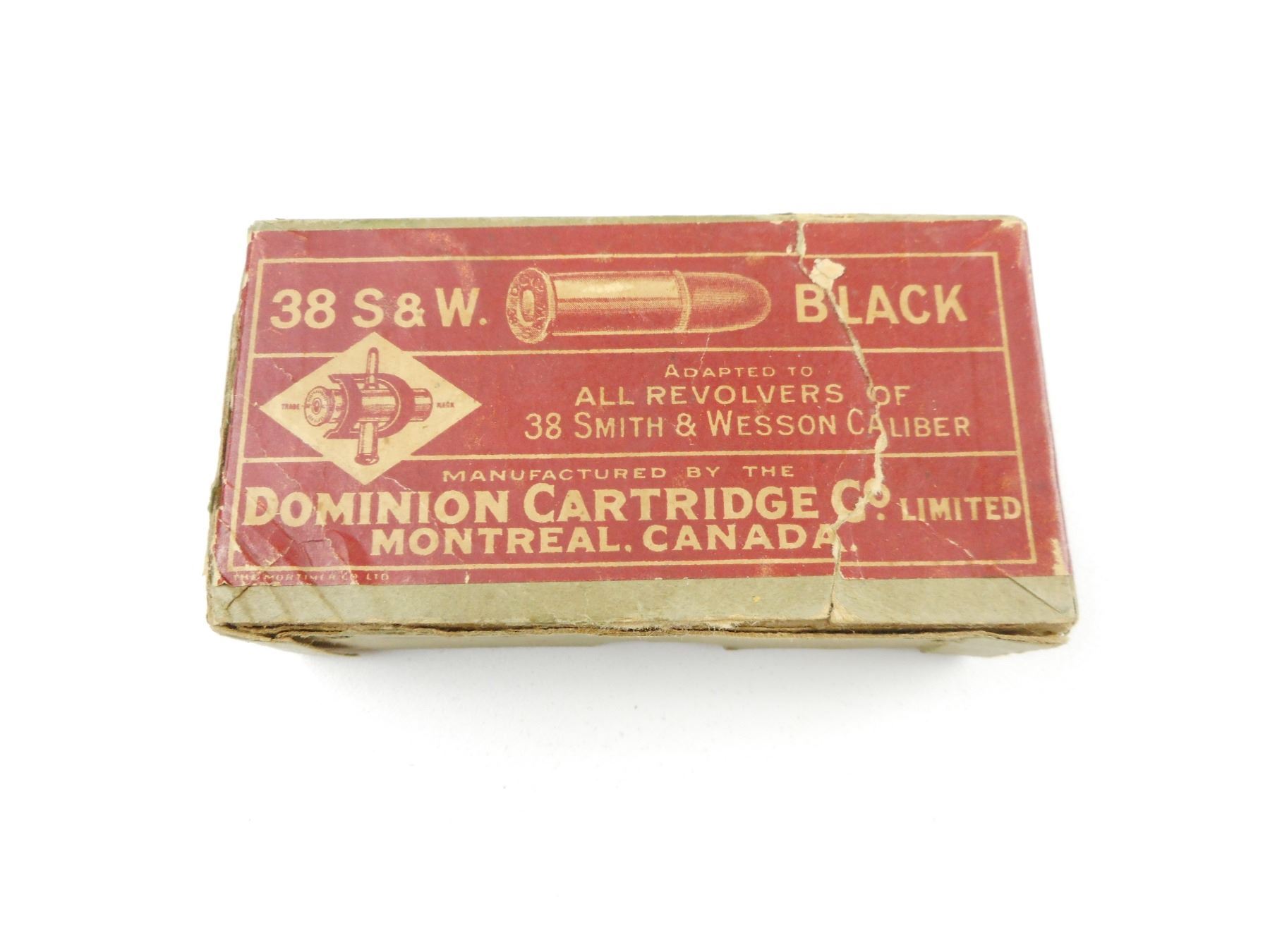 38 S & W AMMO , 46 RNDS 38 S & W, HEAD STAMPED 38 S & W, D.C.CO. IN VINTAGE DOMINION BOX