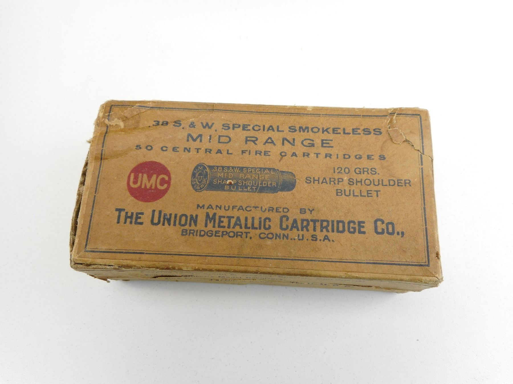 .38 S & W SPECIAL BY UMC AMMO , 50 RNDS .38 SPECIAL BY UMC - SHARP SHOULDER BULLET AMMO, IN VINTAGE UMC BOX