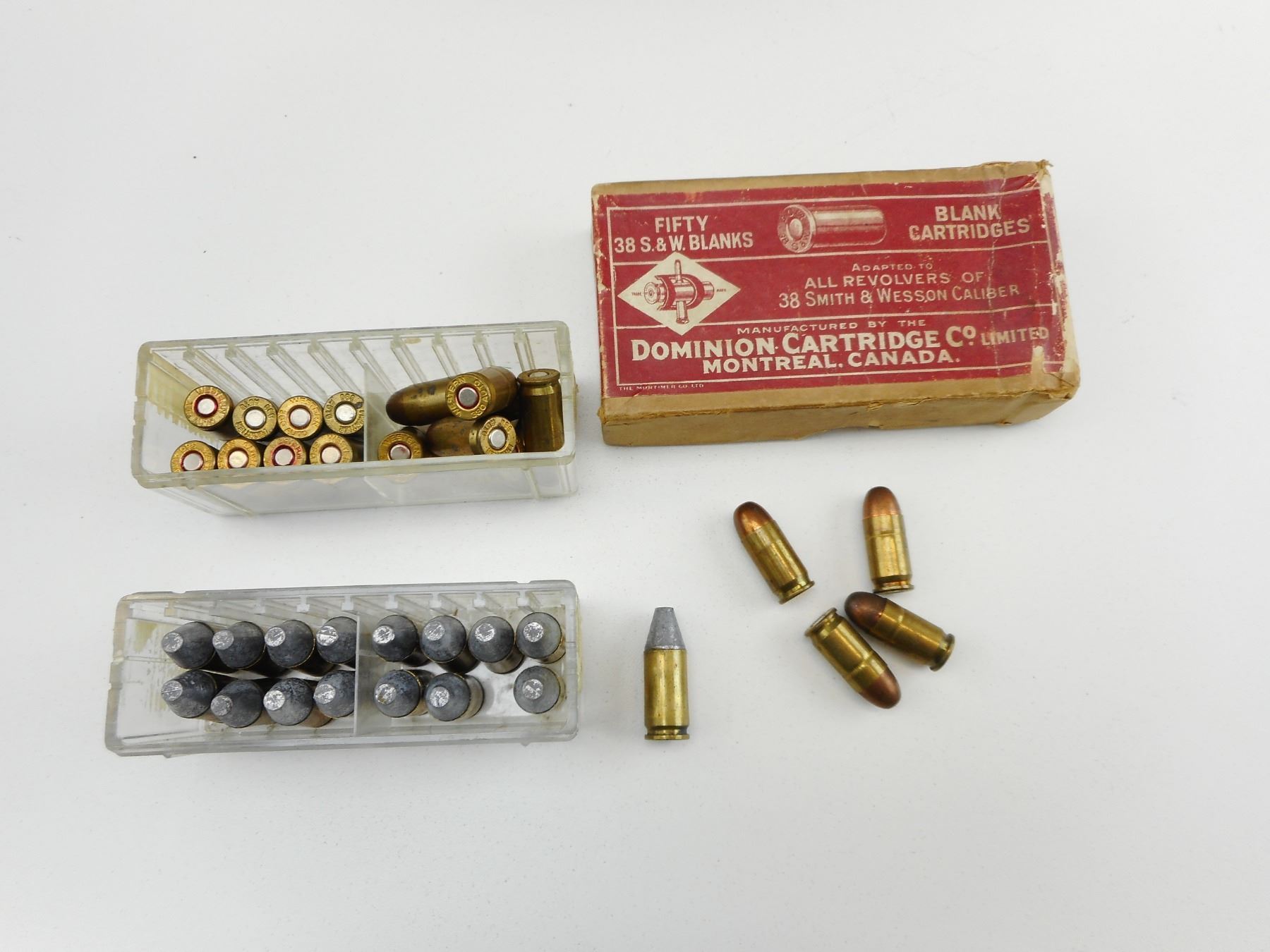 380 AUTO AMMO, .358 AMMO, 38 S&W BLANKS & BRASS IN VINTAGE DOMINION BOX