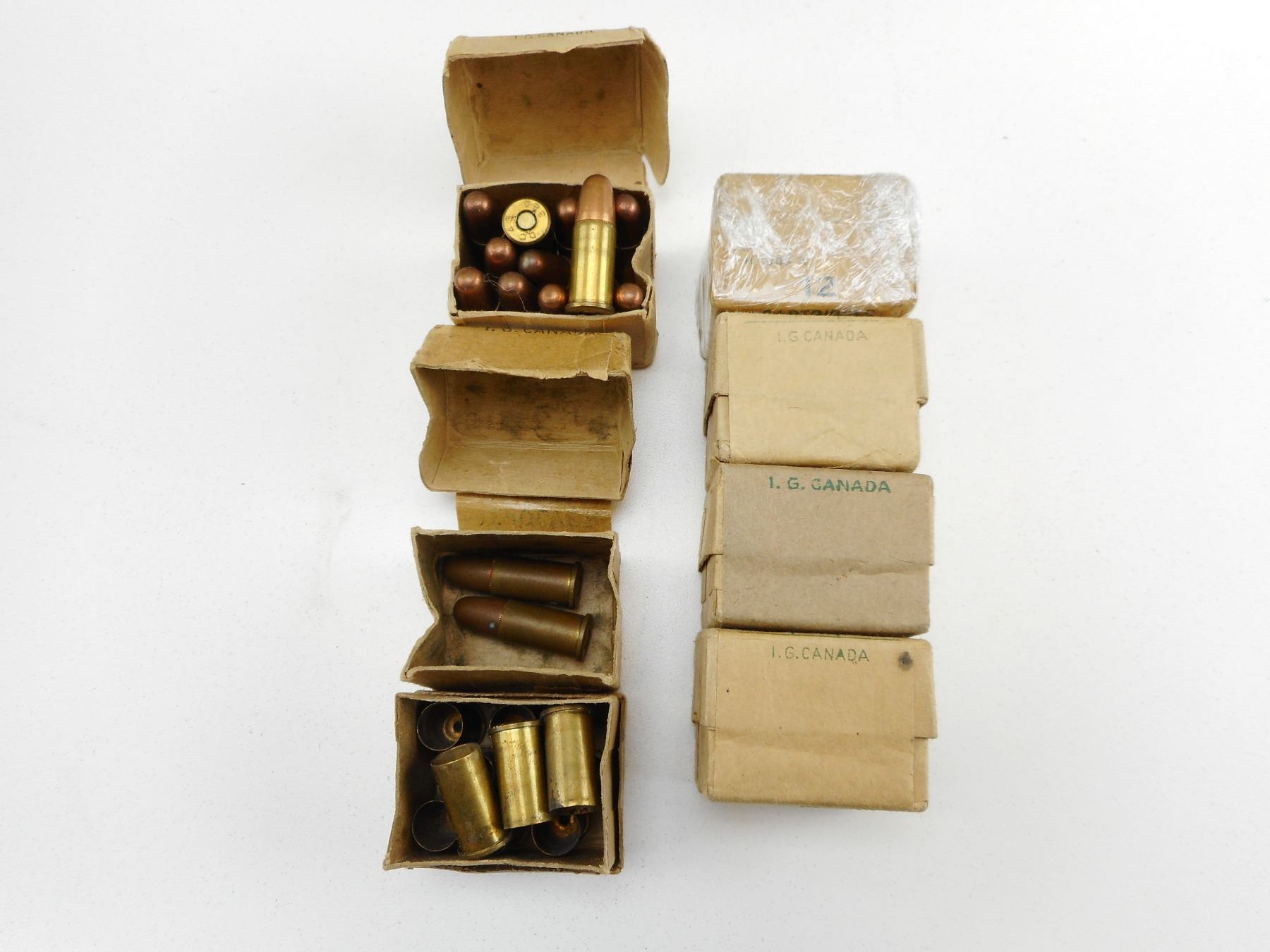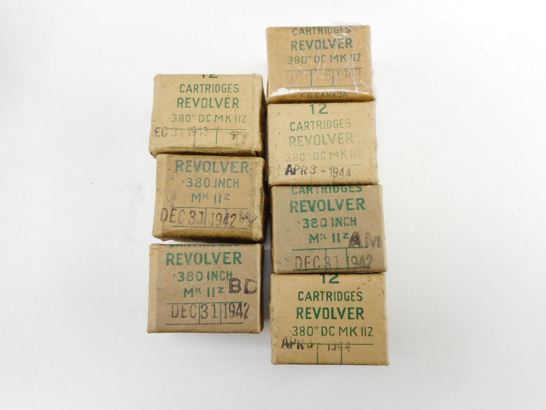 .380" DC MK 11Z AMMO , 62 RNDS .380" DC MK 11Z AMMO, DATED 1942,1943, 1944 - SOME SEALED BOXES, 12 BRASS .380"