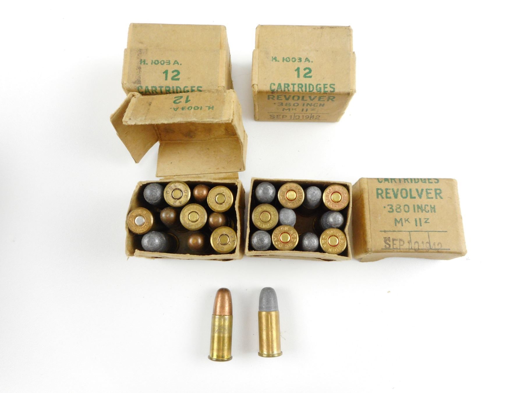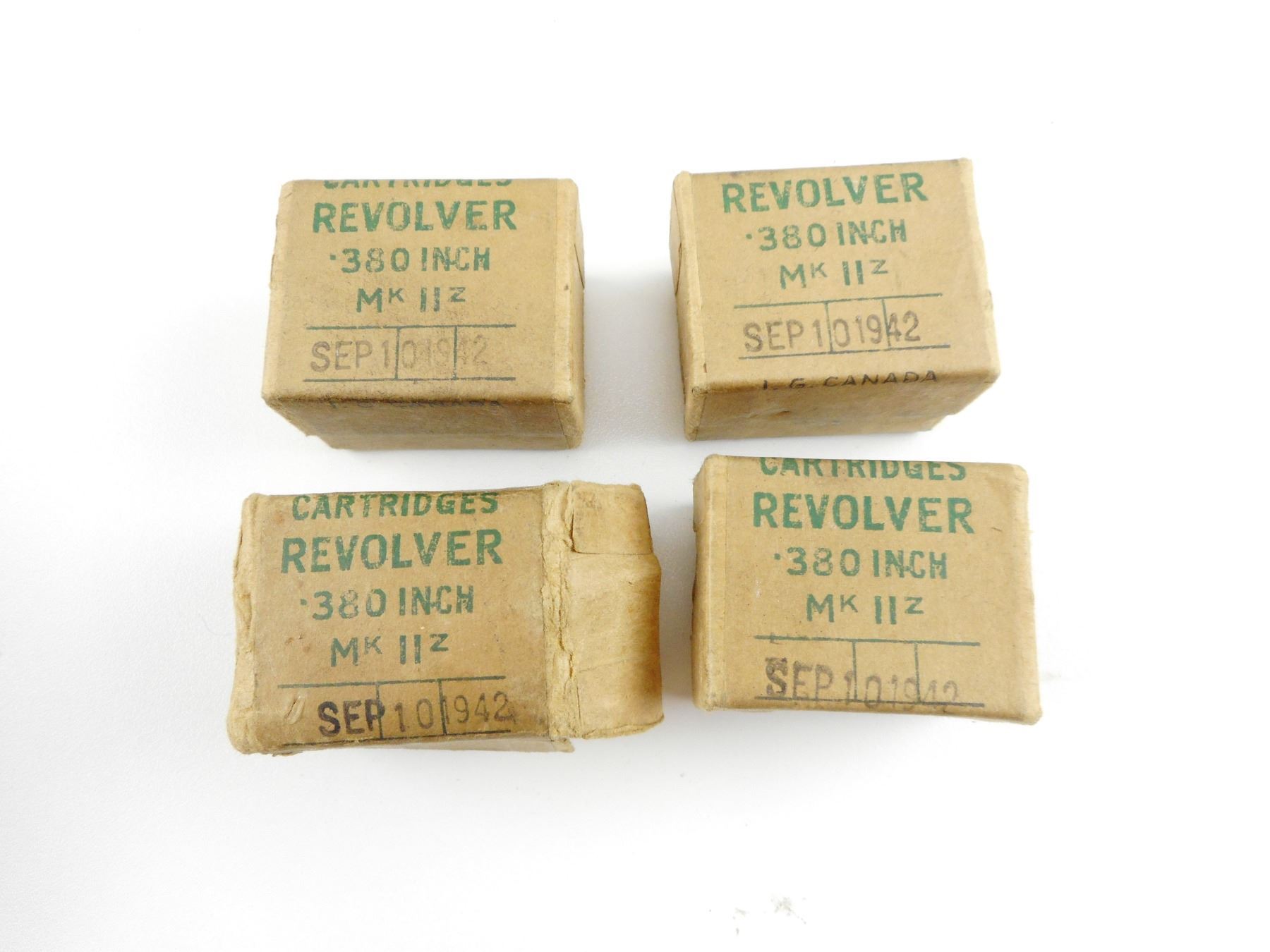 .380 INCH MK IIZ AMMO , 48 RNDS .380 INCH MK IIZ AMMO, BOXES STAMPED 1942, 2 SEALED BOXES