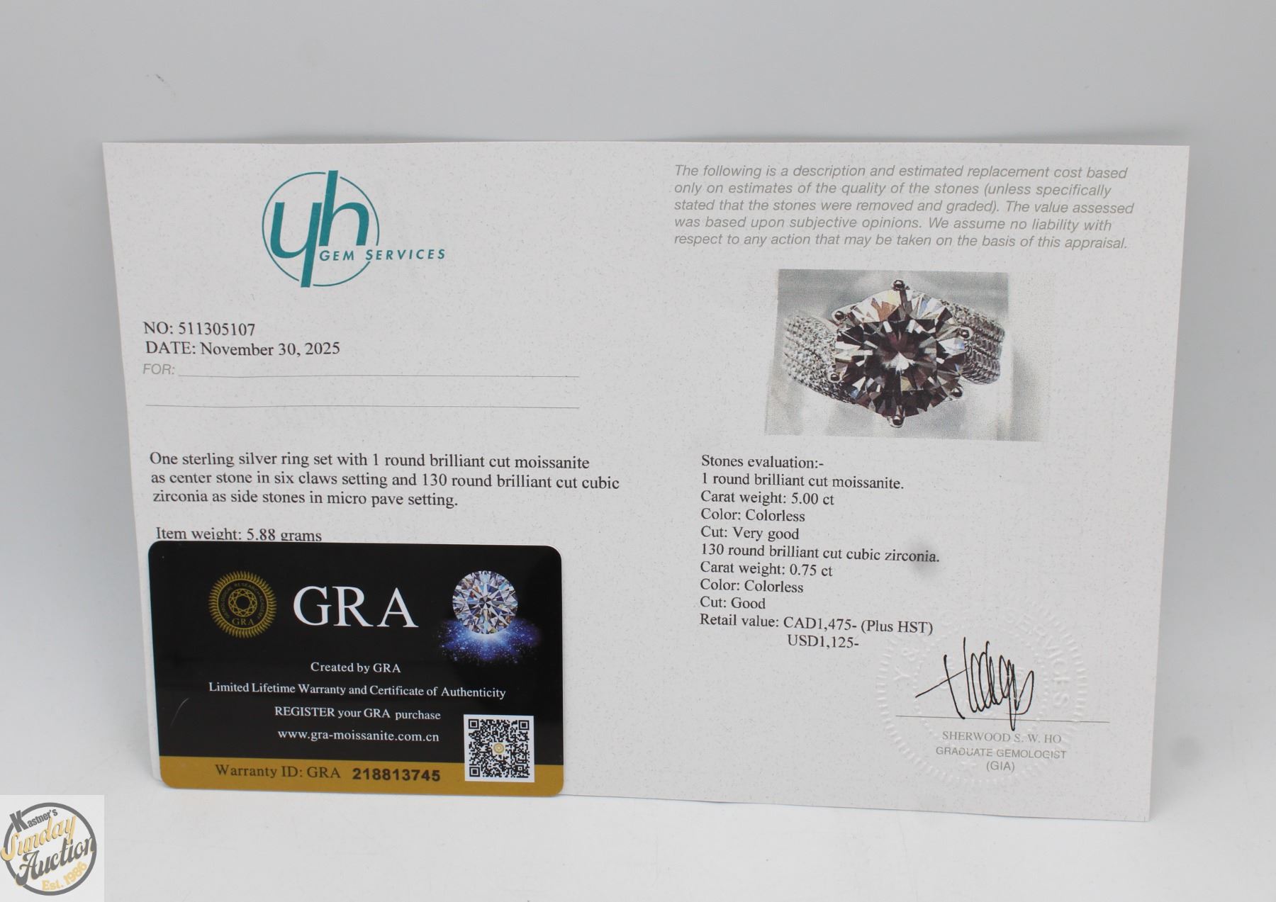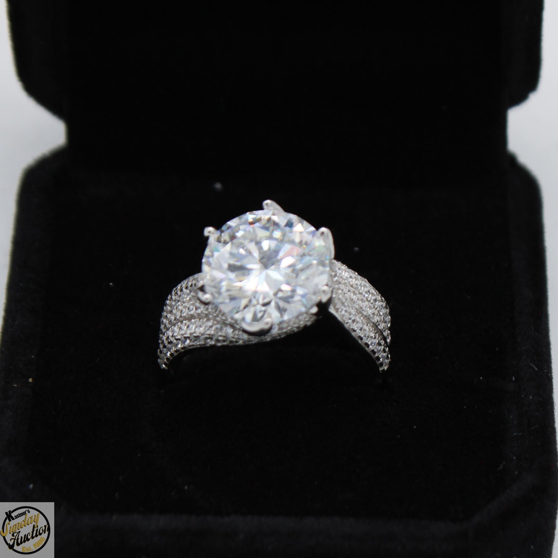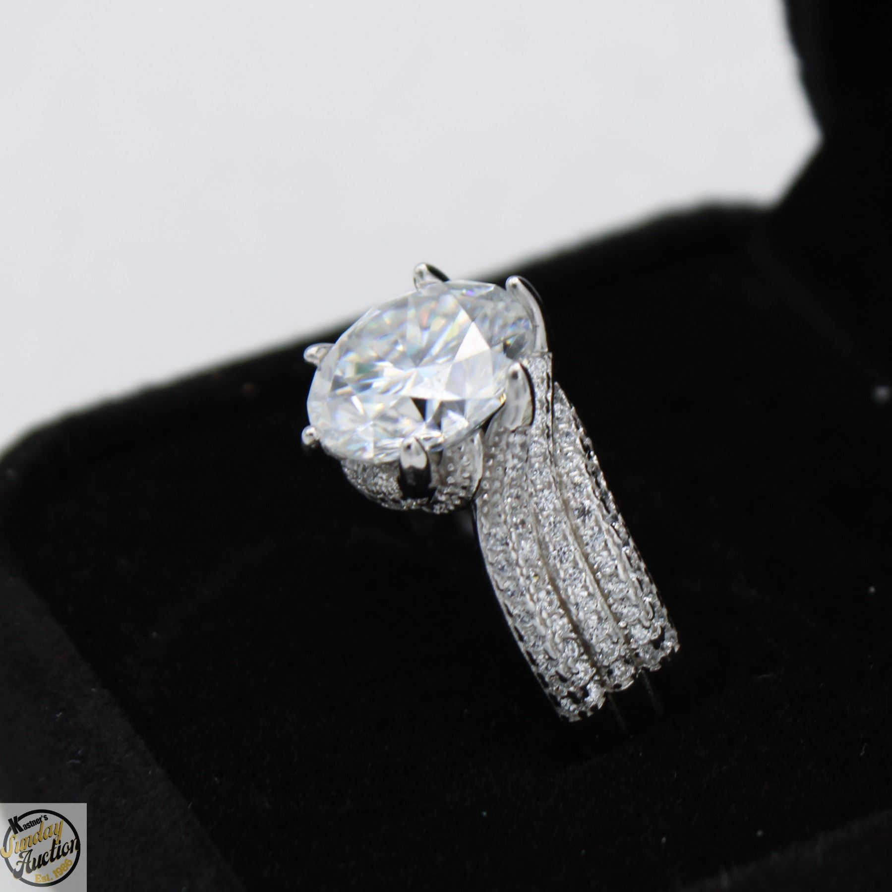 CUT MOISSANITE STONE VVS D COLOR SET WITH 130 ROUND BRILLIANT CUT CUBIC ZIRCONIA’S SET IN 925 SILVER RING SIZE 7 RETAIL VALUE $1,475.00 **ALL ITEMS MUST BE REMOVED BY 5PM SATURDAY, FEBRUARY 28TH 2026. ALL REMAINING ITEMS WILL BE SUBJECT TO A $6.00 PER DAY STORAGE CHARGE. ANY ITEMS REMAINING AFTER MONDAY, MARCH 16TH, 2026 WILL BE CONSIDERED FORFEITED. NO REFUNDS WILL BE ISSUED FOR FORFEITED ITEMS. TO SCHEDULE A PICK UP APPOINTMENT CLICK HERE
