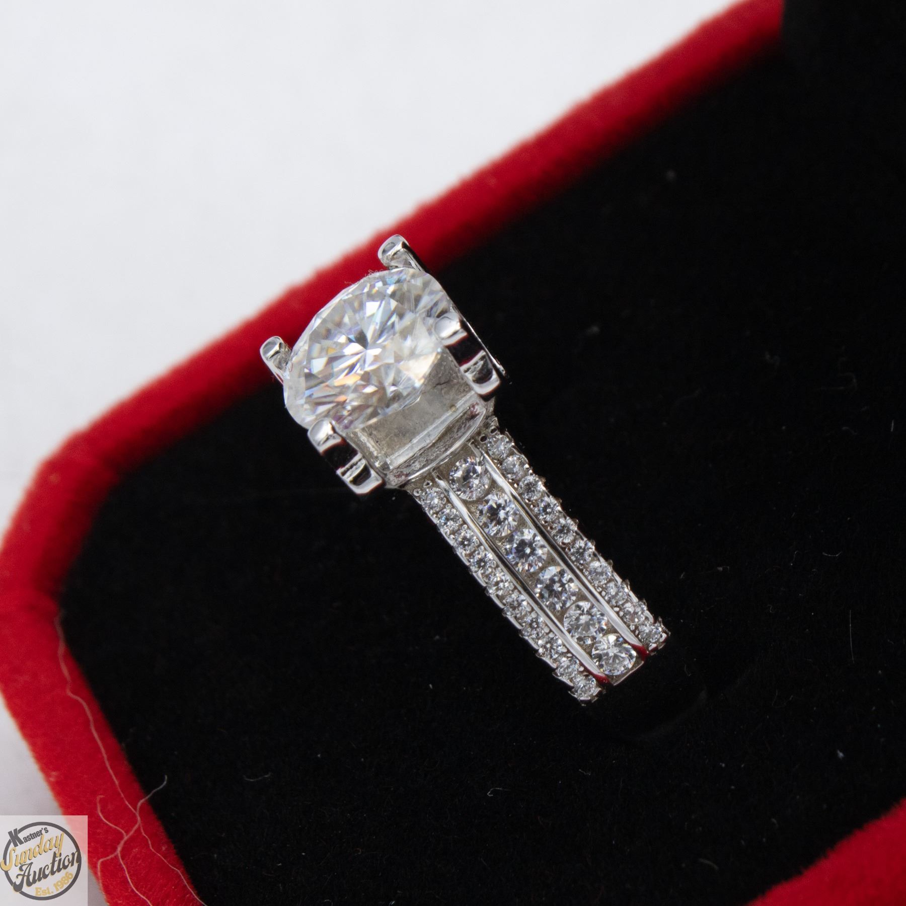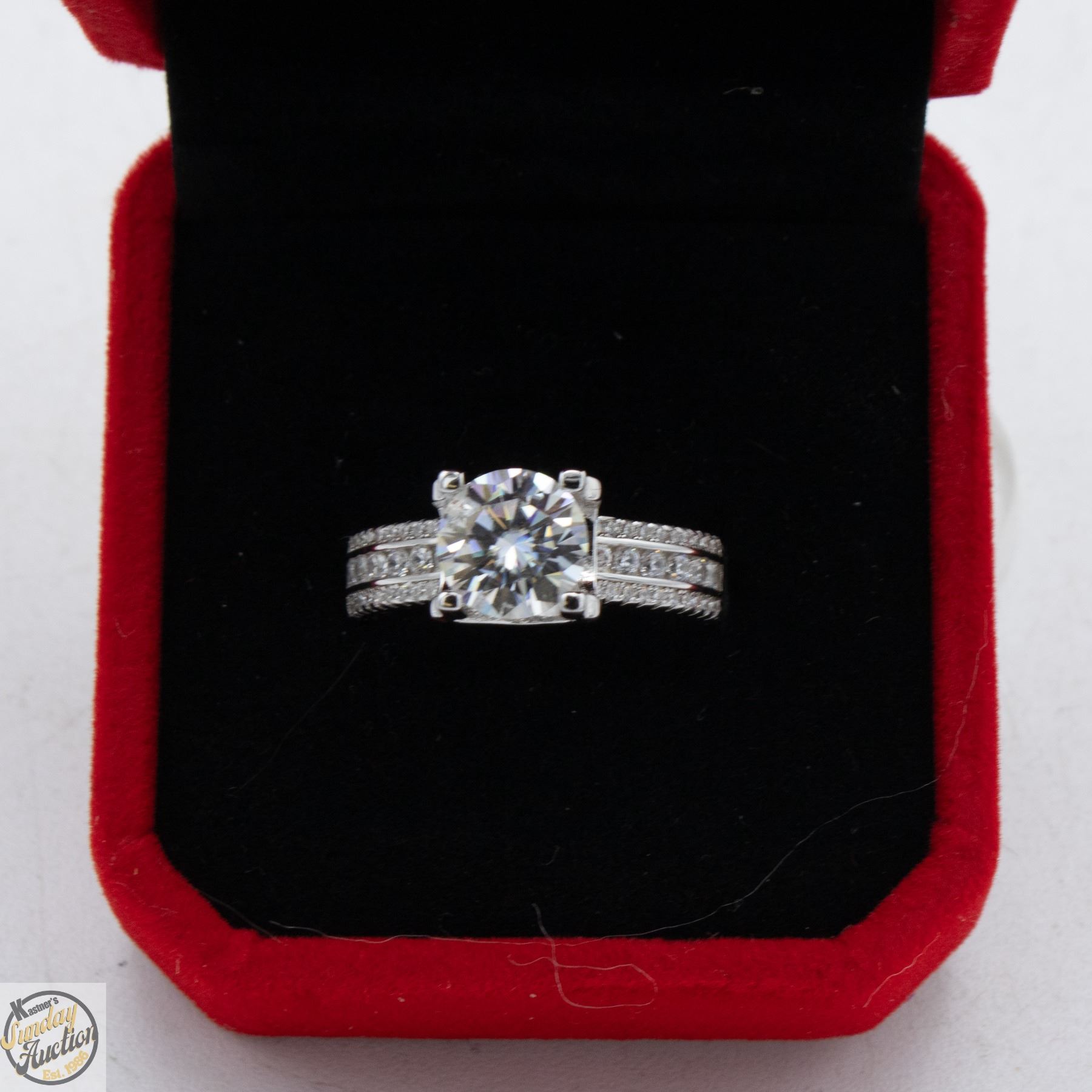 CUT MOISSANITE STONE VVS D COLOR WITH 52 ROUND BRILLIANT CUT CUBIC ZIRCONIA SET BELOW IN 3 ROWS PER SIDE IN SHANKS SET IN 925 SILVER RING SIZE 7 RETAIL VALUE $1,050.00 **ALL ITEMS MUST BE REMOVED BY 5PM SATURDAY, MARCH 21ST 2026. ALL REMAINING ITEMS WILL BE SUBJECT TO A $6.00 PER DAY STORAGE CHARGE. ANY ITEMS REMAINING AFTER MONDAY, APRIL 13TH 2026 WILL BE CONSIDERED FORFEITED. NO REFUNDS WILL BE ISSUED FOR FORFEITED ITEMS. TO SCHEDULE A PICK UP APPOINTMENT CLICK HERE
