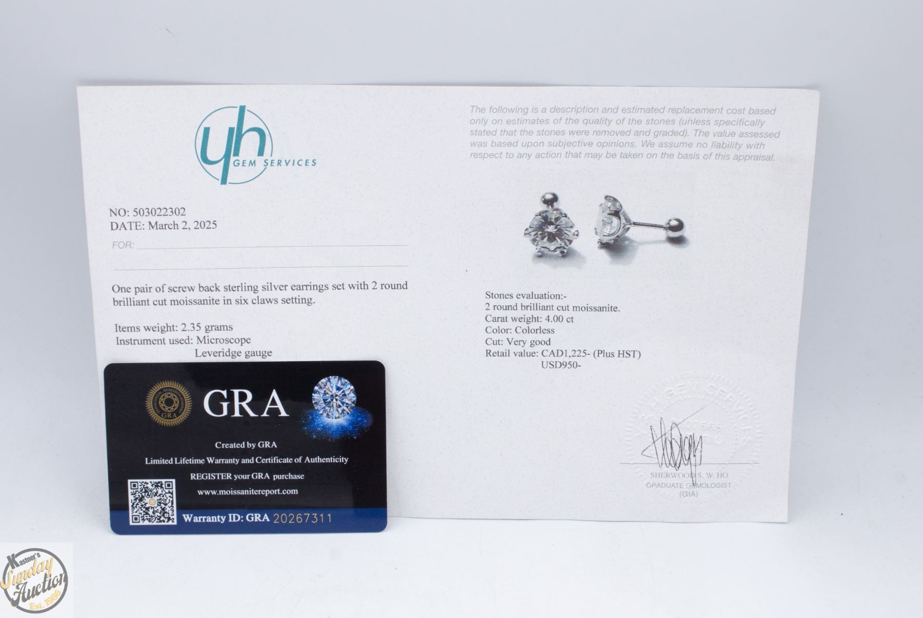 CUT MOISSANITE STONES VVS D COLOR SET IN 6 CLAW FILAGREE BASKET HEAD SET IN 925 SILVER EARRINGS WITH SCREW BACKS RETAIL VALUE $1,225.00 **ALL ITEMS MUST BE REMOVED BY 5PM SATURDAY, MARCH 7TH 2026. ALL REMAINING ITEMS WILL BE SUBJECT TO A $6.00 PER DAY STORAGE CHARGE. ANY ITEMS REMAINING AFTER MONDAY, MARCH 30TH 2026 WILL BE CONSIDERED FORFEITED. NO REFUNDS WILL BE ISSUED FOR FORFEITED ITEMS. TO SCHEDULE A PICK UP APPOINTMENT CLICK HERE