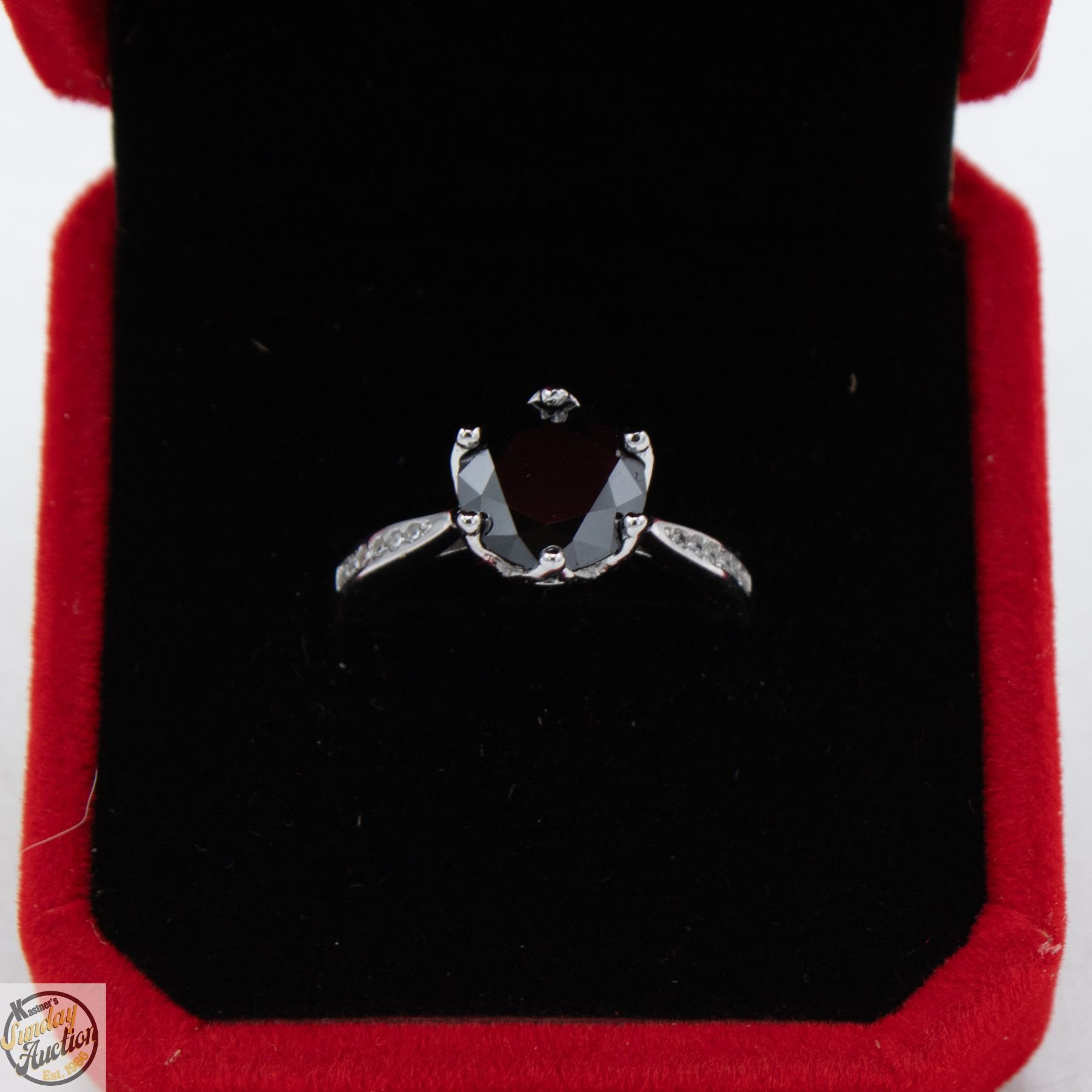 CUT MOISSANITE STONE VVS BLACK COLOR WITH 12 ROUND BRILLIANT CUT CUBIC ZIRCONIA SET IN SHANKS SET IN 925 SILVER RING SIZE 7 RETAIL VALUE $1,275.00 **ALL ITEMS MUST BE REMOVED BY 5PM SATURDAY, MARCH 14TH 2026. ALL REMAINING ITEMS WILL BE SUBJECT TO A $6.00 PER DAY STORAGE CHARGE. ANY ITEMS REMAINING AFTER MONDAY, APRIL 6TH 2026 WILL BE CONSIDERED FORFEITED. NO REFUNDS WILL BE ISSUED FOR FORFEITED ITEMS. TO SCHEDULE A PICK UP APPOINTMENT CLICK HERE