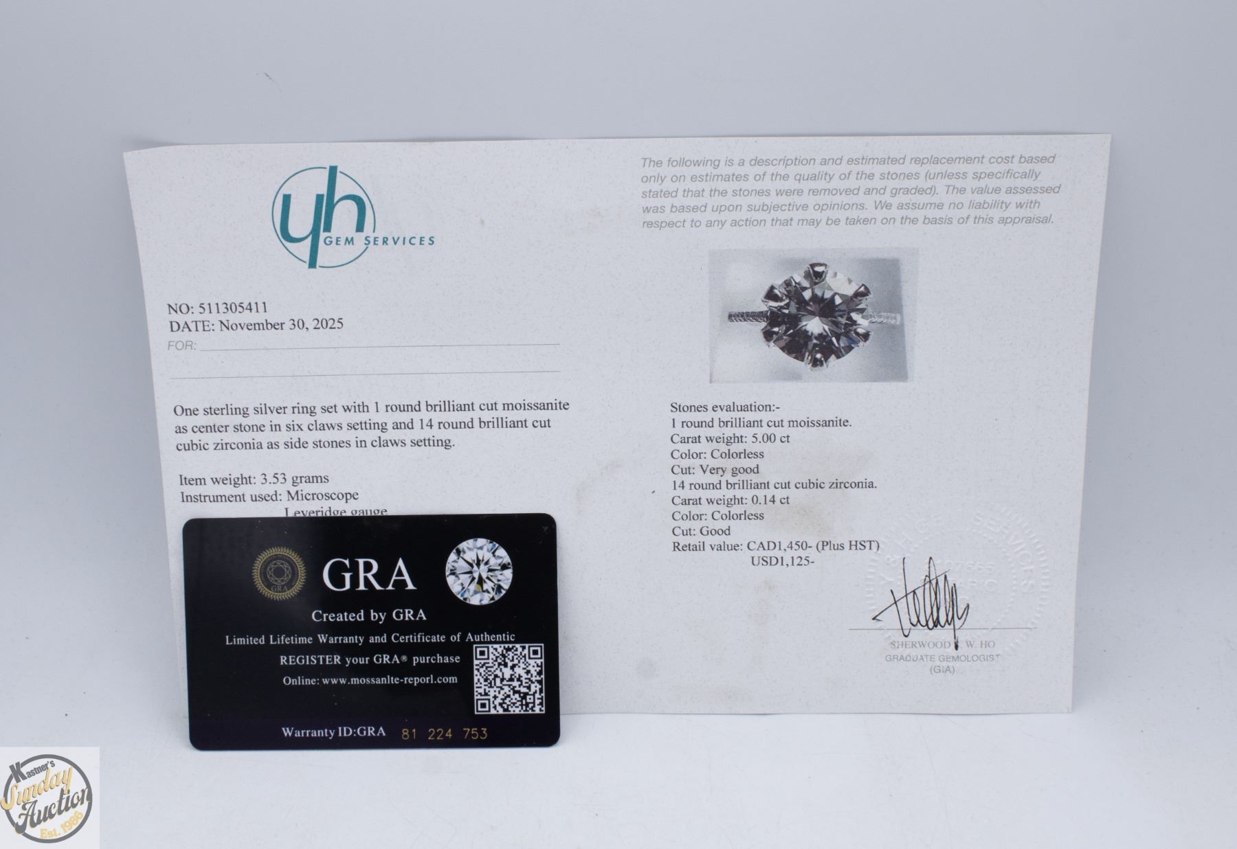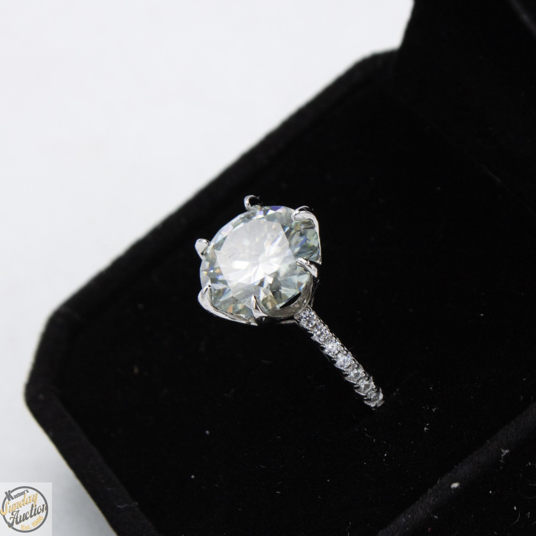 CUT MOISSANITE STONE VVS D COLOR SET IN CENTER WITH 14 ROUND BRILLIANT CUT CUBIC ZIRCONIA AND SET IN SHANK SET IN 925 SILVER RING SIZE 6 RETAIL VALUE $1,450.00 **ALL ITEMS MUST BE REMOVED BY 5PM SATURDAY, MARCH 14TH 2026. ALL REMAINING ITEMS WILL BE SUBJECT TO A $6.00 PER DAY STORAGE CHARGE. ANY ITEMS REMAINING AFTER MONDAY, APRIL 6TH 2026 WILL BE CONSIDERED FORFEITED. NO REFUNDS WILL BE ISSUED FOR FORFEITED ITEMS. TO SCHEDULE A PICK UP APPOINTMENT CLICK HERE
