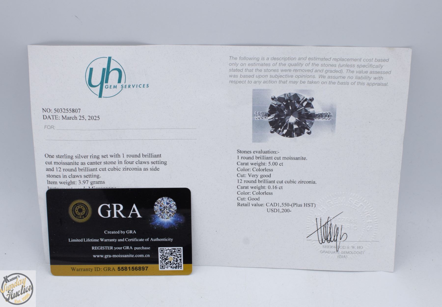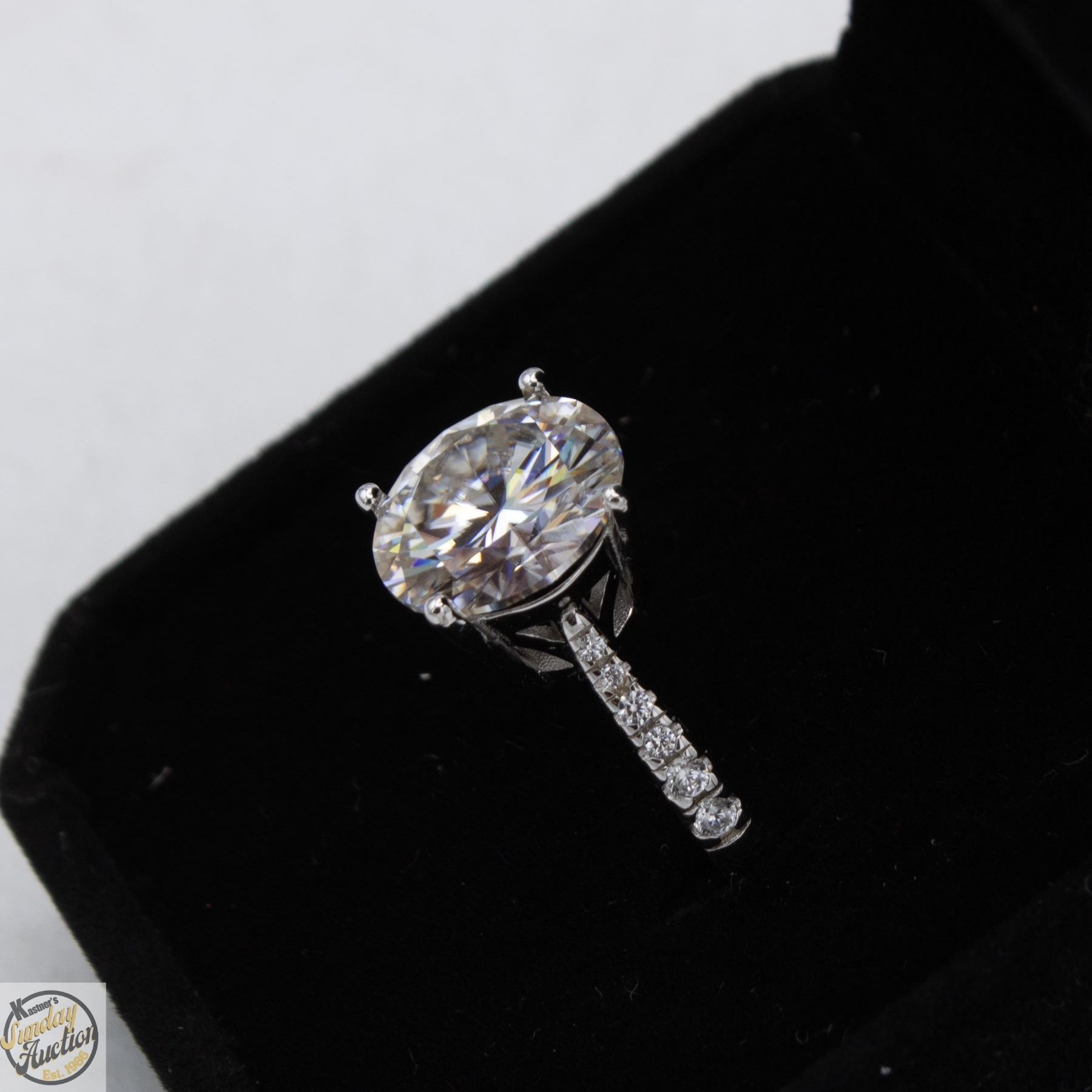 CUT MOISSANITE STONE VVS D COLOR SET IN CENTER WITH 12 ROUND BRILLIANT CUT CUBIC ZIRCONIA AND SET IN SHANK SET IN 925 SILVER RING SIZE 6.25 RETAIL VALUE $1,450.00 **ALL ITEMS MUST BE REMOVED BY 5PM SATURDAY, MARCH 14TH 2026. ALL REMAINING ITEMS WILL BE SUBJECT TO A $6.00 PER DAY STORAGE CHARGE. ANY ITEMS REMAINING AFTER MONDAY, APRIL 6TH 2026 WILL BE CONSIDERED FORFEITED. NO REFUNDS WILL BE ISSUED FOR FORFEITED ITEMS. TO SCHEDULE A PICK UP APPOINTMENT CLICK HERE