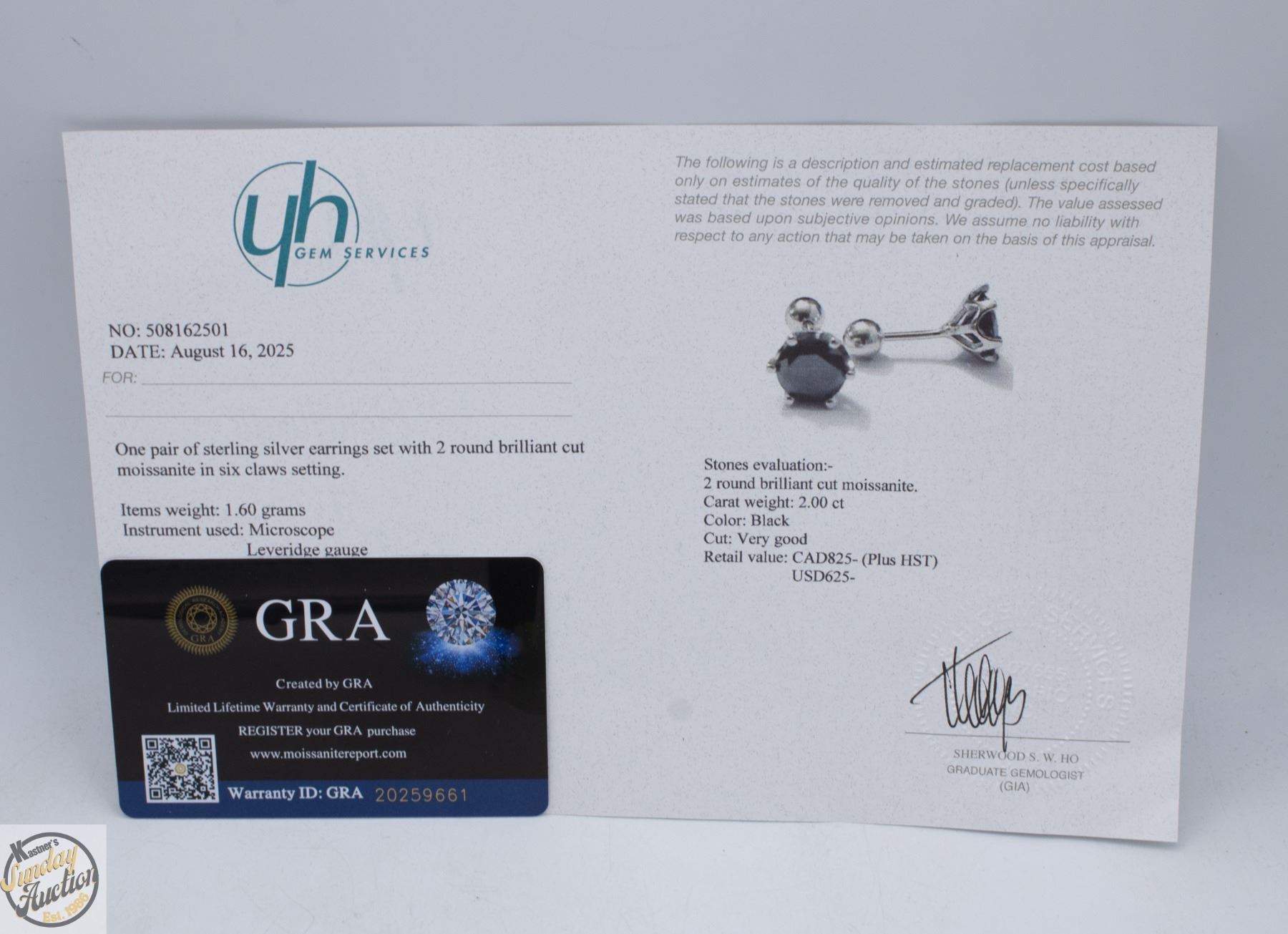 CUT MOISSANITE STONES VVS BLACK COLOR SET IN 4 CLAW BASKET HEAD SET IN 925 SILVER EARRINGS RETAIL VALUE $825.00 **ALL ITEMS MUST BE REMOVED BY 5PM SATURDAY, MARCH 14TH 2026. ALL REMAINING ITEMS WILL BE SUBJECT TO A $6.00 PER DAY STORAGE CHARGE. ANY ITEMS REMAINING AFTER MONDAY, APRIL 6TH 2026 WILL BE CONSIDERED FORFEITED. NO REFUNDS WILL BE ISSUED FOR FORFEITED ITEMS. TO SCHEDULE A PICK UP APPOINTMENT CLICK HERE