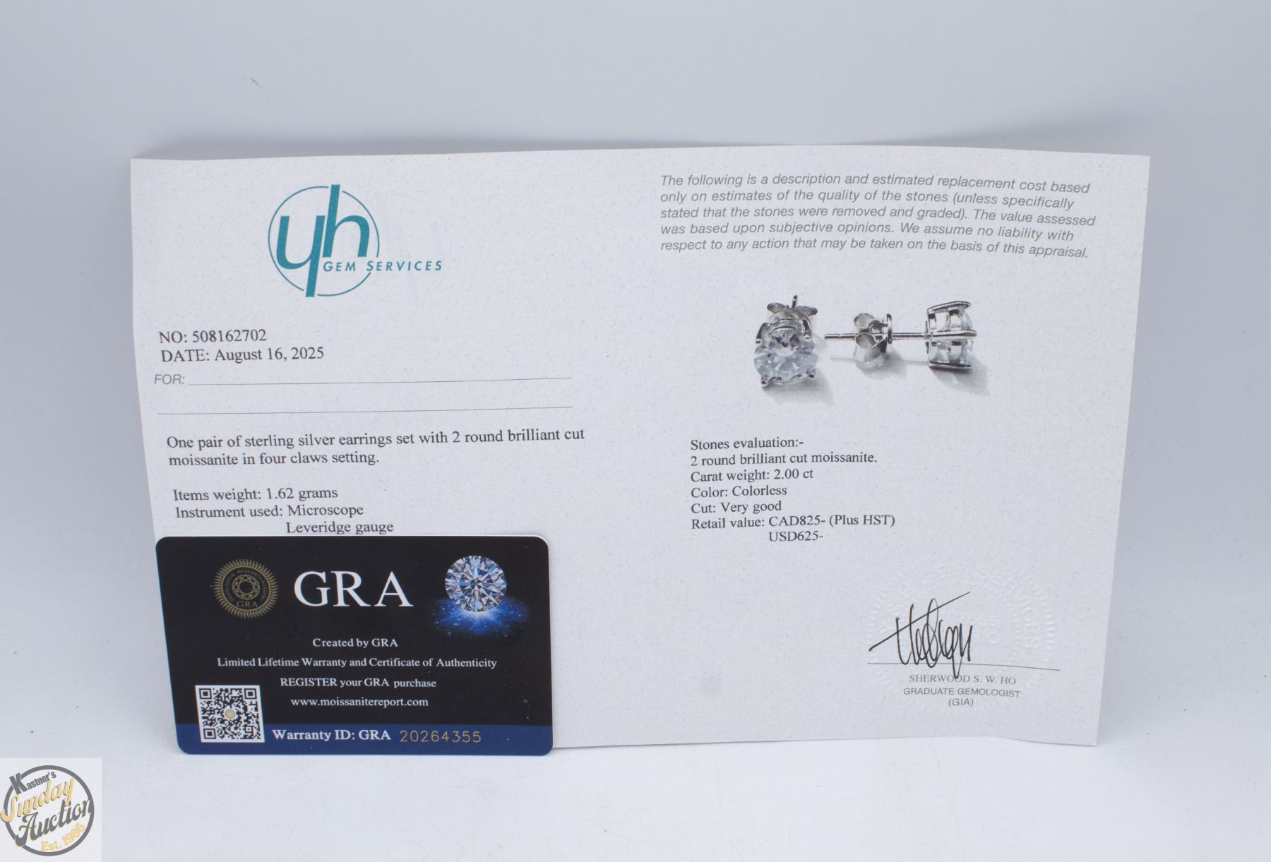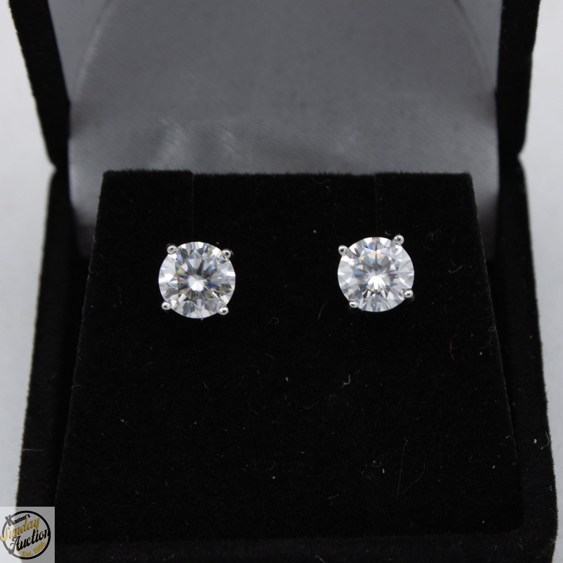 CUT MOISSANITE STONES VVS D COLOR SET IN 4 CLAW BASKET HEAD SET IN 925 SILVER EARRINGS RETAIL VALUE $825.00 **ALL ITEMS MUST BE REMOVED BY 5PM SATURDAY, MARCH 14TH 2026. ALL REMAINING ITEMS WILL BE SUBJECT TO A $6.00 PER DAY STORAGE CHARGE. ANY ITEMS REMAINING AFTER MONDAY, APRIL 6TH 2026 WILL BE CONSIDERED FORFEITED. NO REFUNDS WILL BE ISSUED FOR FORFEITED ITEMS. TO SCHEDULE A PICK UP APPOINTMENT CLICK HERE