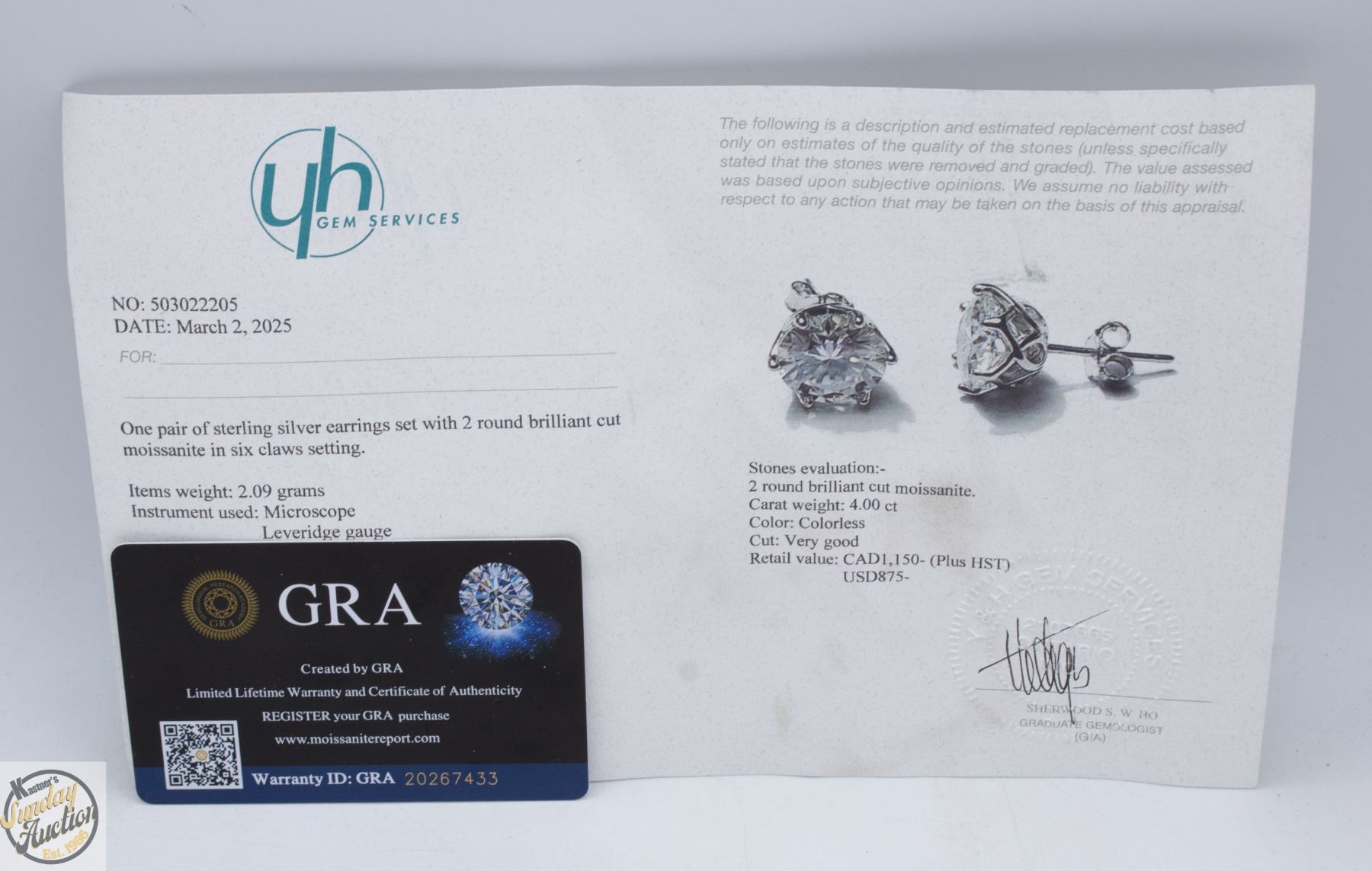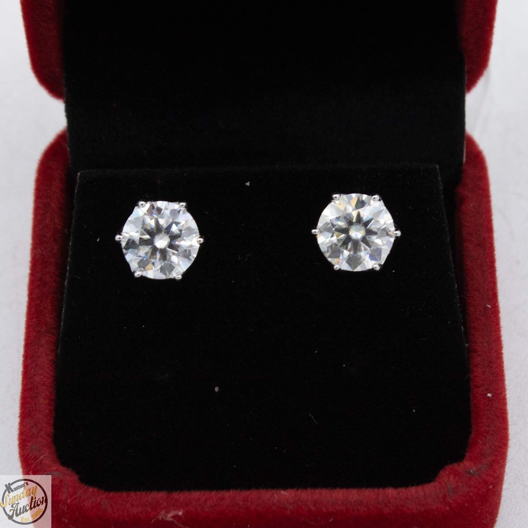 CUT MOISSANITE STONES VVS D COLOR SET IN 6 CLAW BASKET HEAD SET IN 925 SILVER EARRINGS RETAIL VALUE $1,150.00 **ALL ITEMS MUST BE REMOVED BY 5PM SATURDAY, MARCH 14TH 2026. ALL REMAINING ITEMS WILL BE SUBJECT TO A $6.00 PER DAY STORAGE CHARGE. ANY ITEMS REMAINING AFTER MONDAY, APRIL 6TH 2026 WILL BE CONSIDERED FORFEITED. NO REFUNDS WILL BE ISSUED FOR FORFEITED ITEMS. TO SCHEDULE A PICK UP APPOINTMENT CLICK HERE