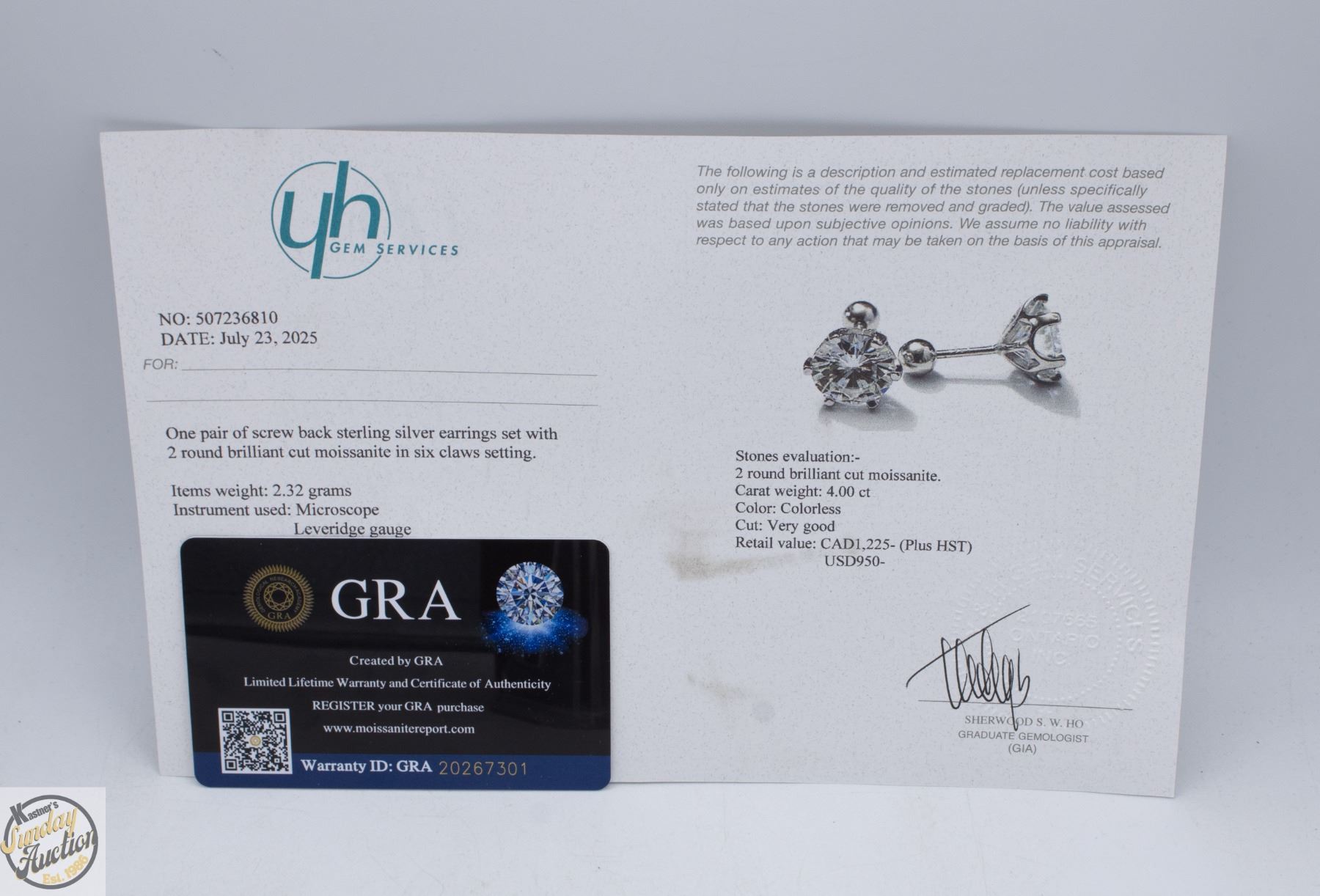 CUT MOISSANITE STONES VVS D COLOR SET IN 6 CLAW FILAGREE BASKET HEAD SET IN 925 SILVER EARRINGS WITH SCREW BACKS RETAIL VALUE $1,225.00 **ALL ITEMS MUST BE REMOVED BY 5PM SATURDAY, MARCH 14TH 2026. ALL REMAINING ITEMS WILL BE SUBJECT TO A $6.00 PER DAY STORAGE CHARGE. ANY ITEMS REMAINING AFTER MONDAY, APRIL 6TH 2026 WILL BE CONSIDERED FORFEITED. NO REFUNDS WILL BE ISSUED FOR FORFEITED ITEMS. TO SCHEDULE A PICK UP APPOINTMENT CLICK HERE