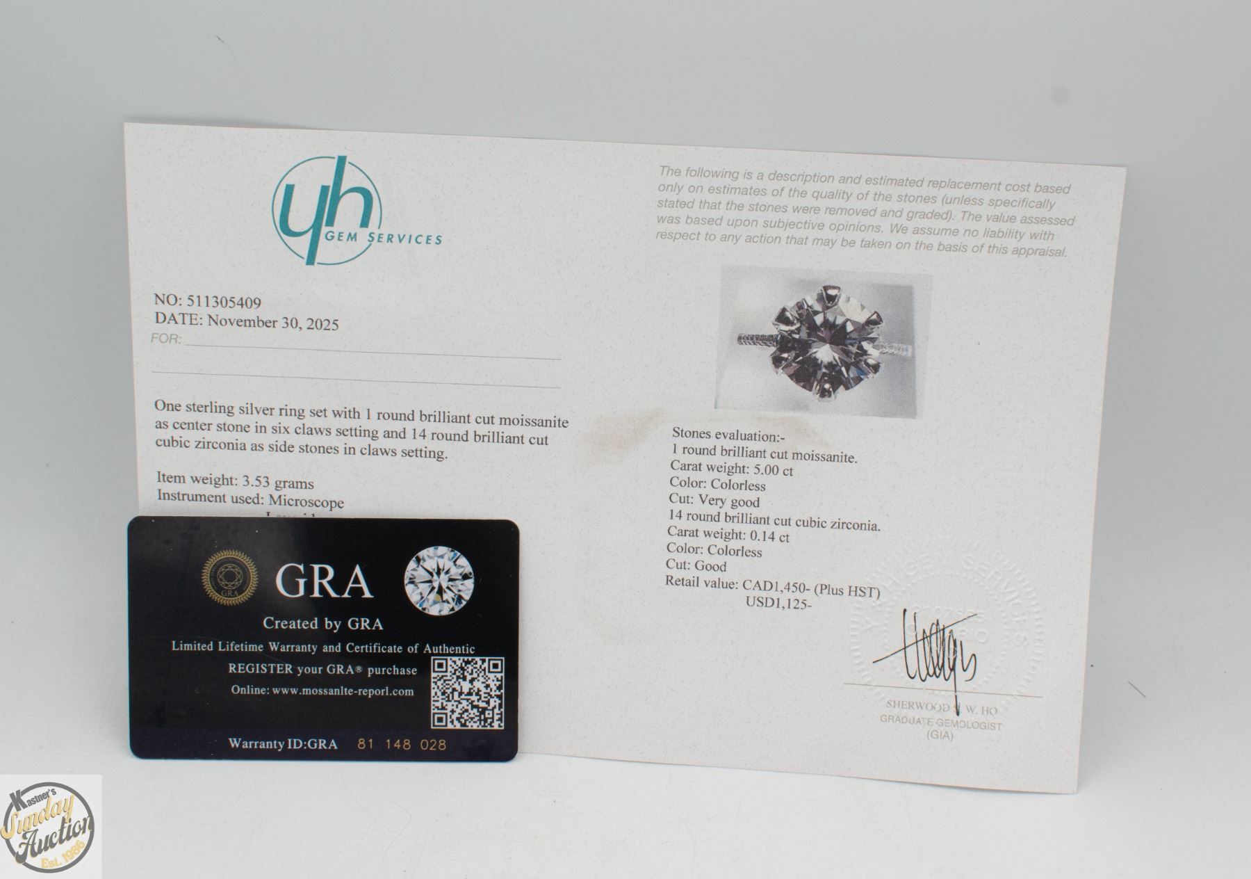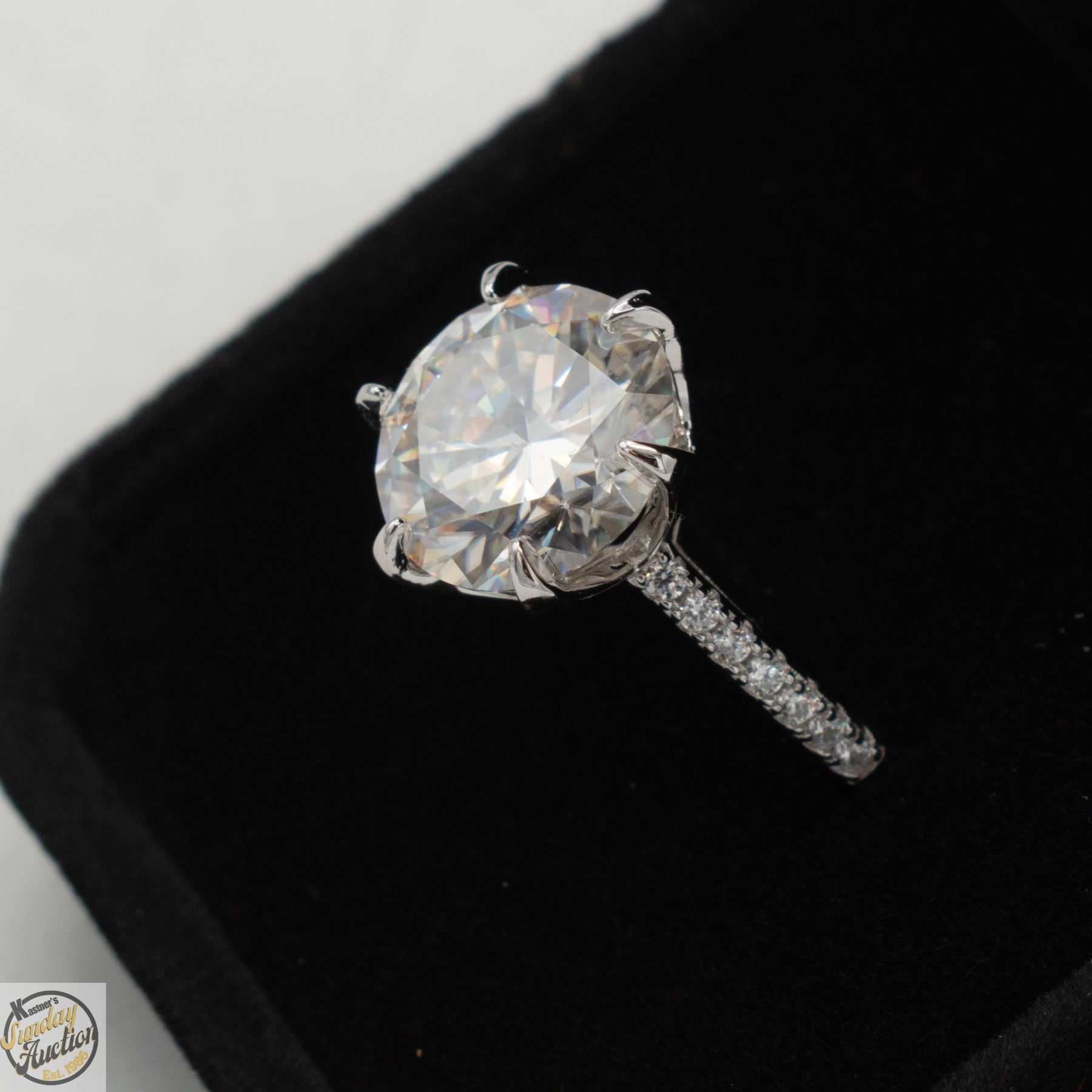 CUT MOISSANITE STONE VVS D COLOR SET IN CENTER WITH 14 ROUND BRILLIANT CUT CUBIC ZIRCONIA AND SET IN SHANK SET IN 925 SILVER RING SIZE 6 RETAIL VALUE $1,450.00 **ALL ITEMS MUST BE REMOVED BY 5PM SATURDAY, MAY 2ND 2026. ALL REMAINING ITEMS WILL BE SUBJECT TO A $6.00 PER DAY STORAGE CHARGE. ANY ITEMS REMAINING AFTER MONDAY, MAY 18TH 2026 WILL BE CONSIDERED FORFEITED. NO REFUNDS WILL BE ISSUED FOR FORFEITED ITEMS. TO SCHEDULE A PICK UP APPOINTMENT CLICK HERE