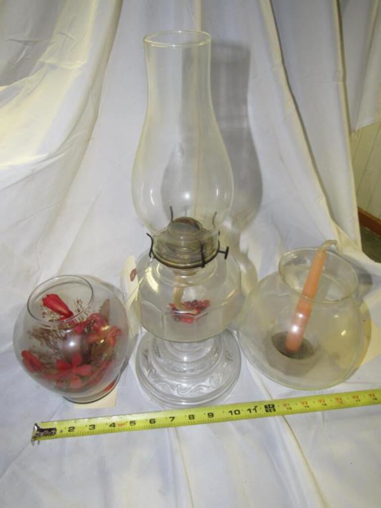 3pc Oil Lamp, Candle Stand, Faux Arrangement