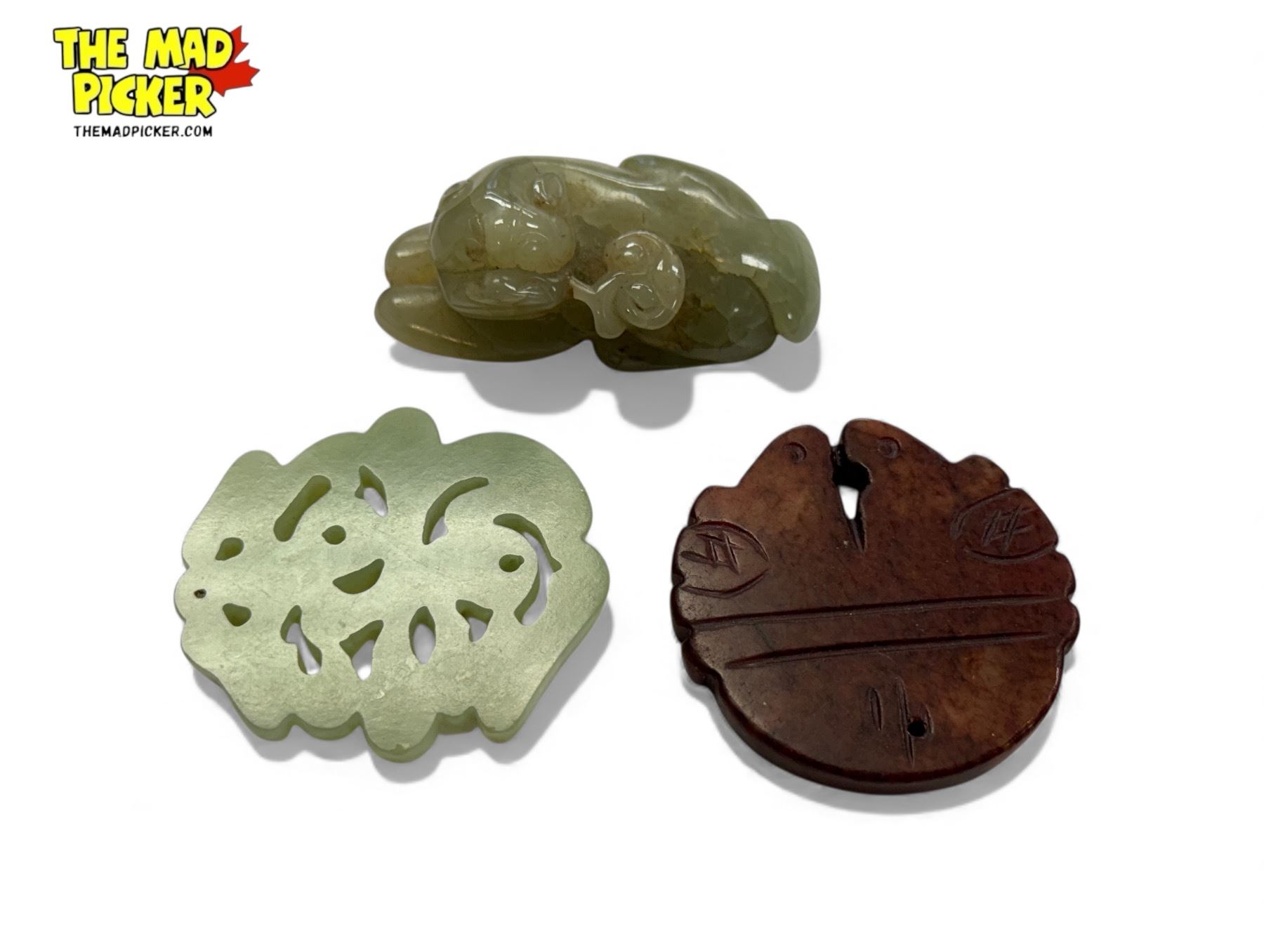 3x Collectibles: Jade Pieces & Red Stone Carving