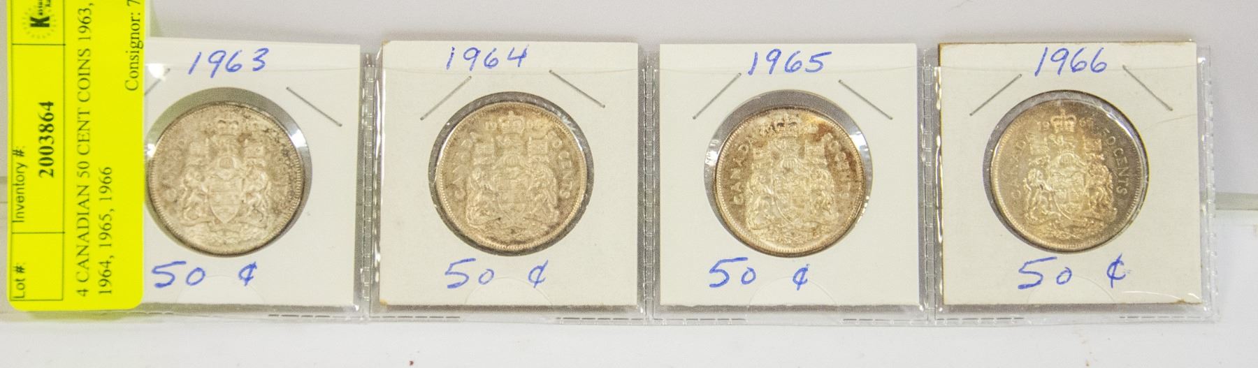 4 CANADIAN 50 CENT COINS 1963, 1964, 1965, 1966