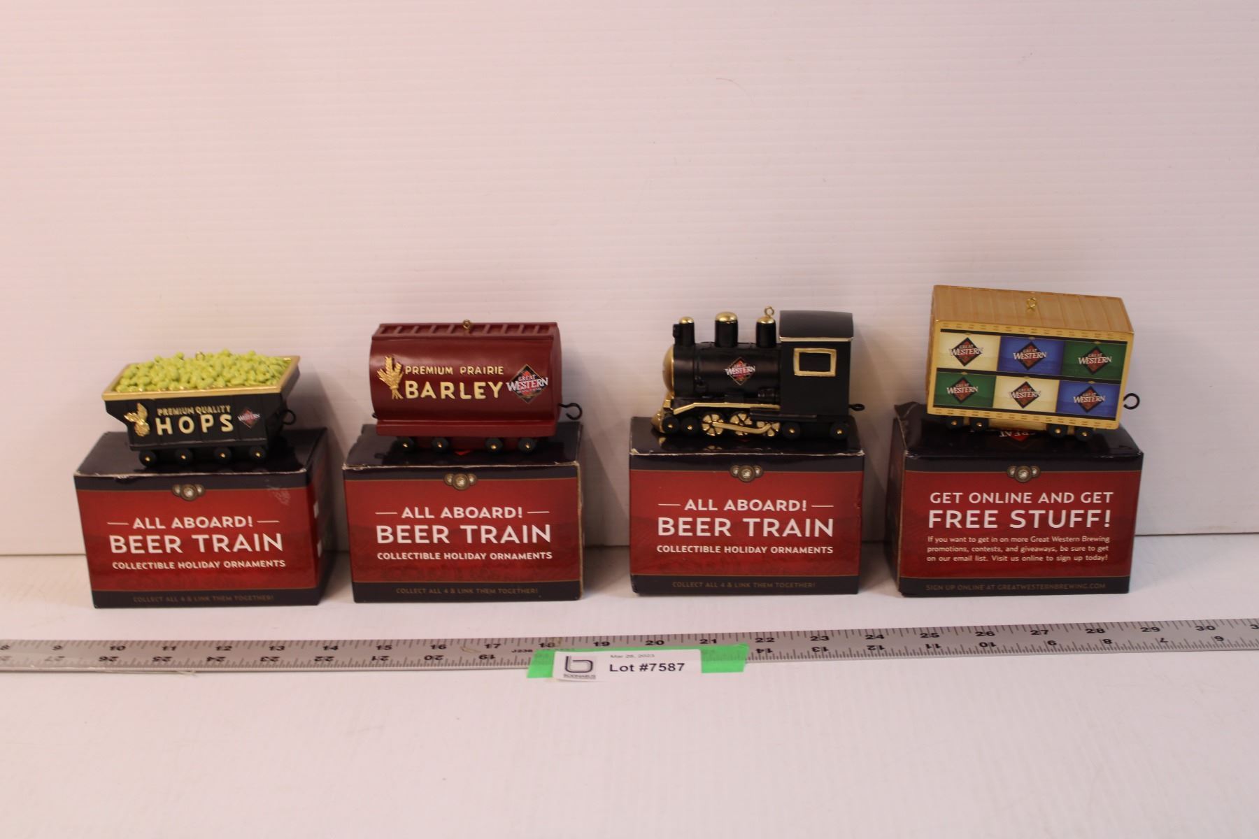(4) Collectible Great Western Beer Train Christmas Ornaments
