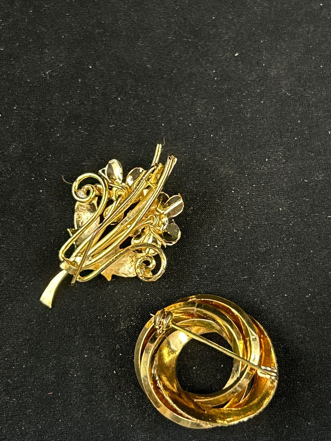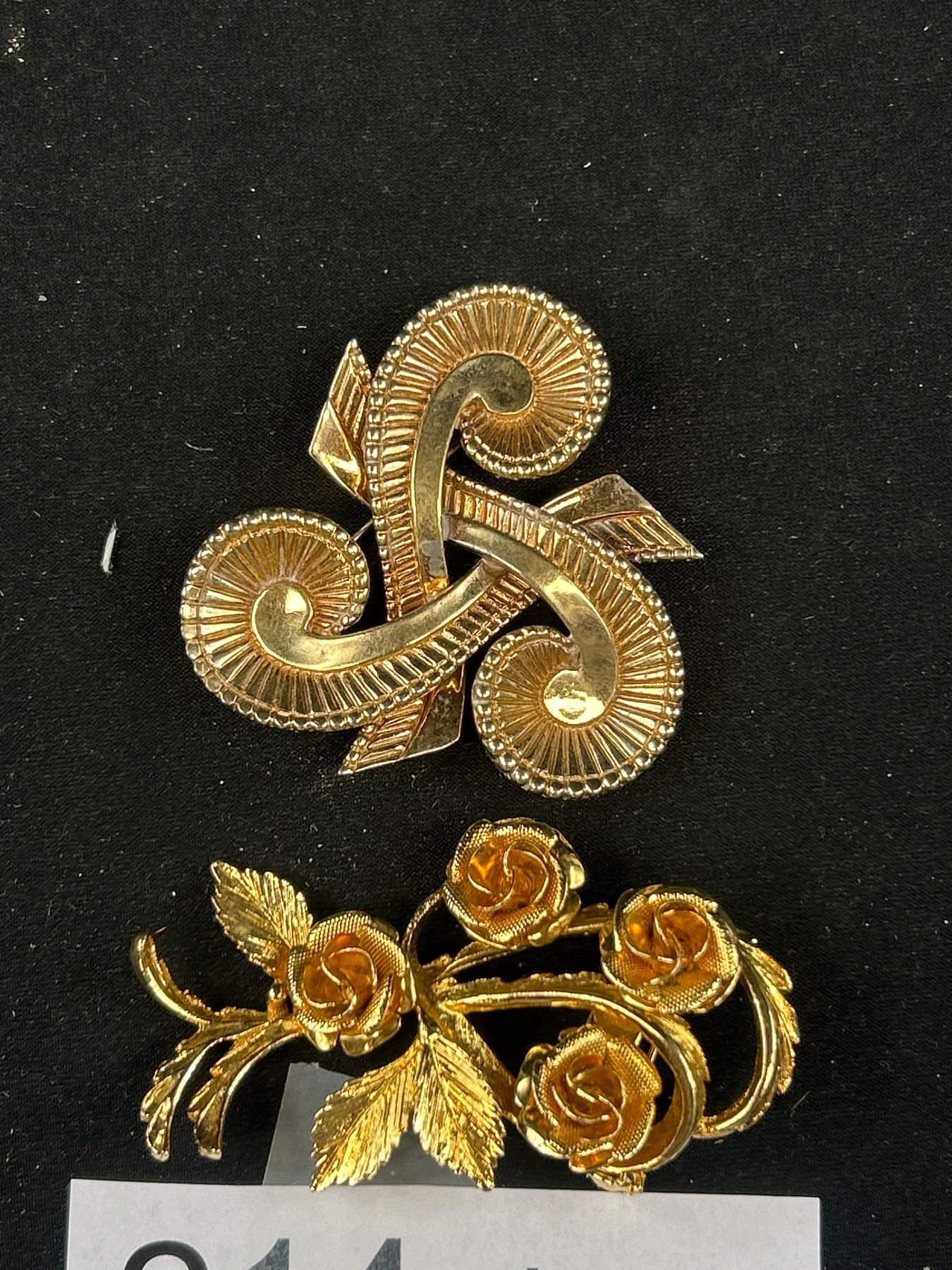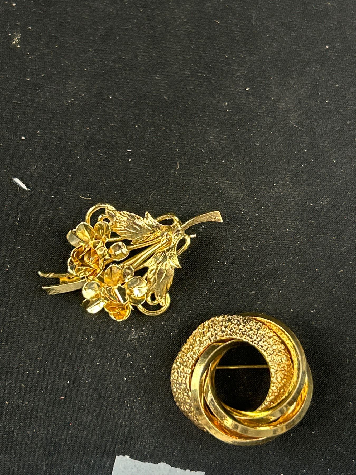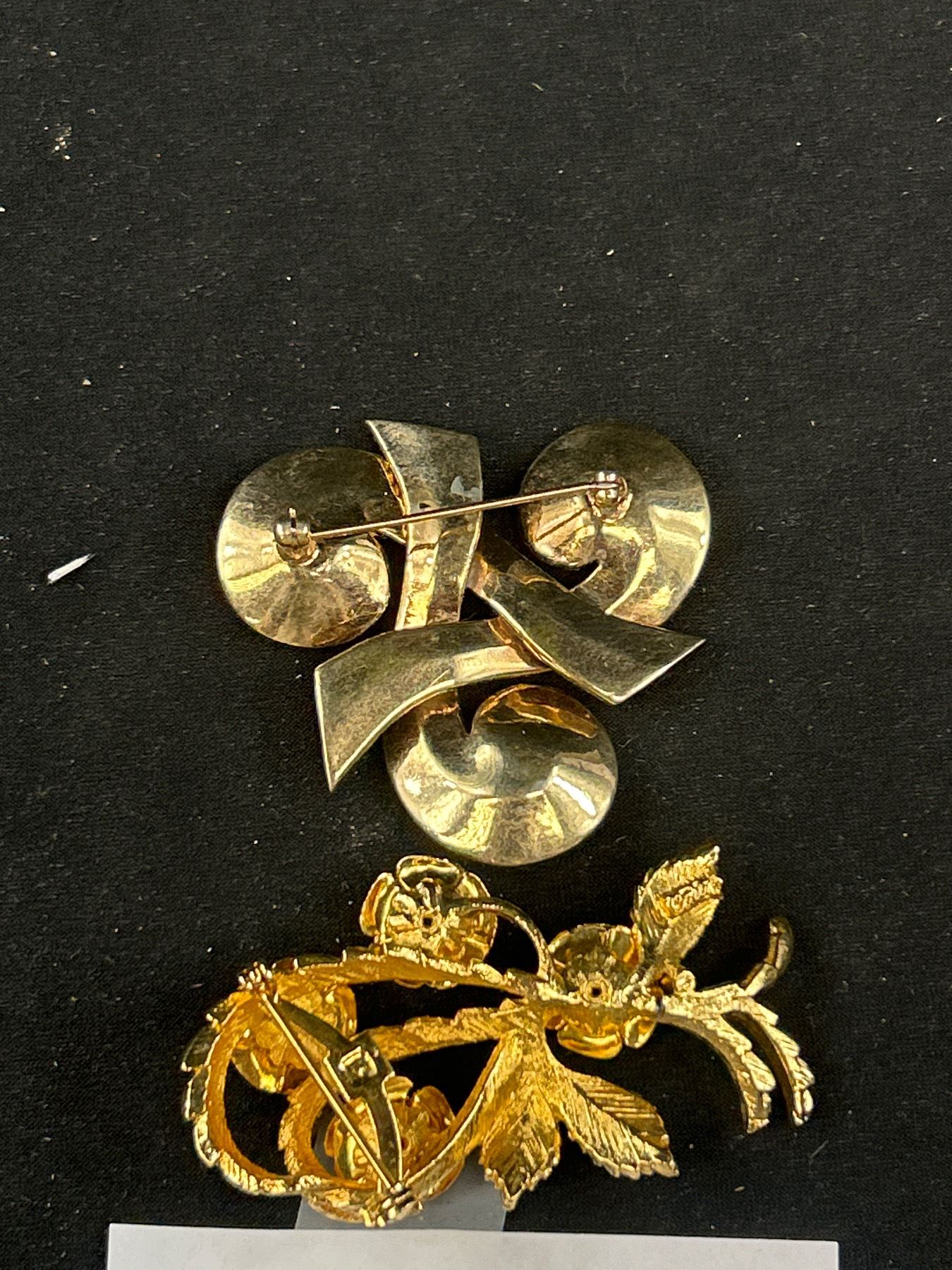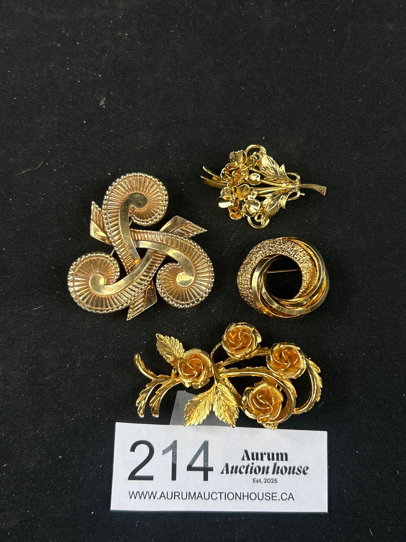 4 Heavy Yellow Gold Plated Vintage Brooches