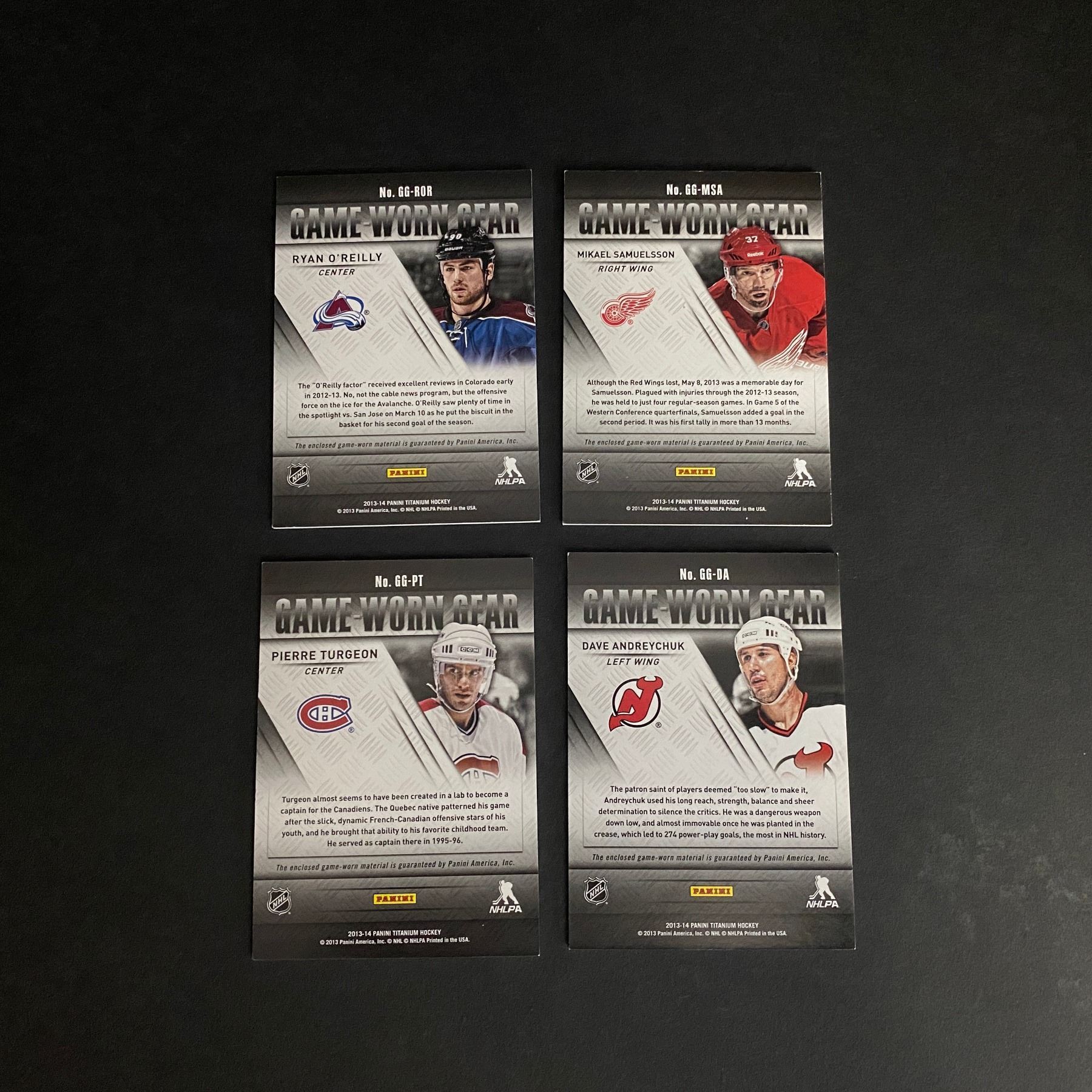 4 JERSEY CARD LOT 2013/14 PANINI TITANIUM HOCKEY ANDREYCHUK, O'REILLY AND MORE