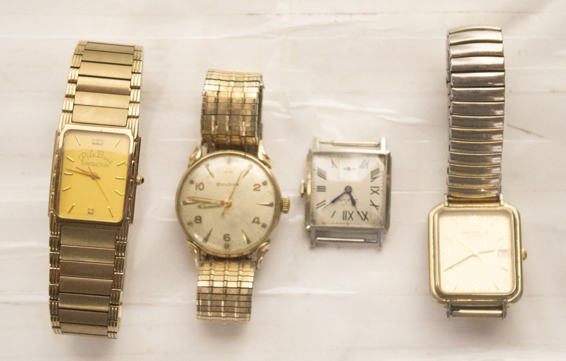 4 MENS WATCHS ELGIN (10K FILLED), BULOVA ETC