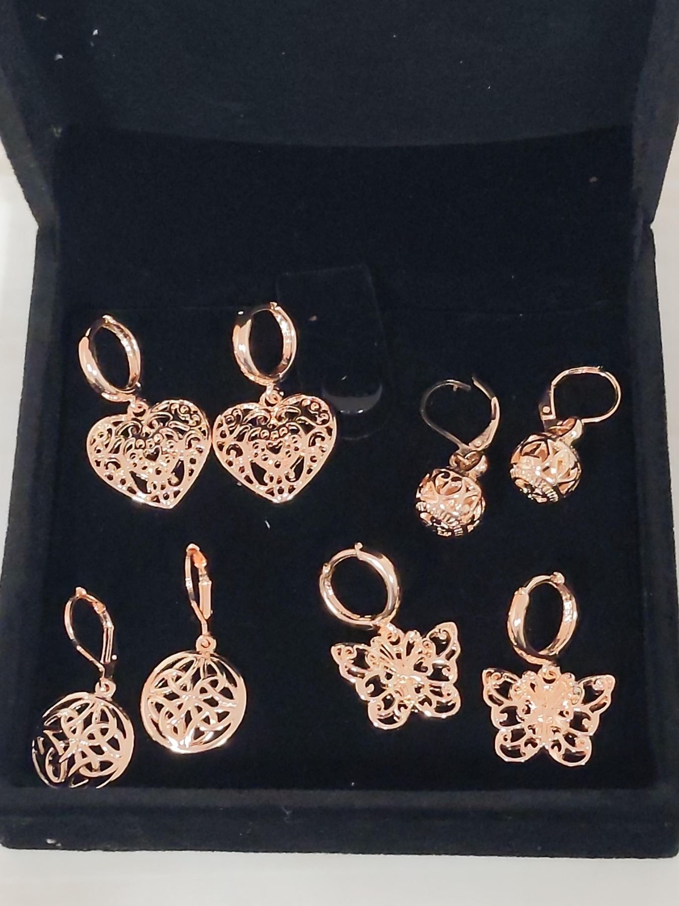 4 PAIRS OF ROSE GOLD TONE EARRINGS