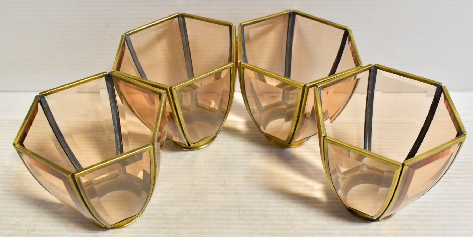 4 SMOKED GLASS FAN GLOBES (UNUSED) 4.25" TALL, 5"