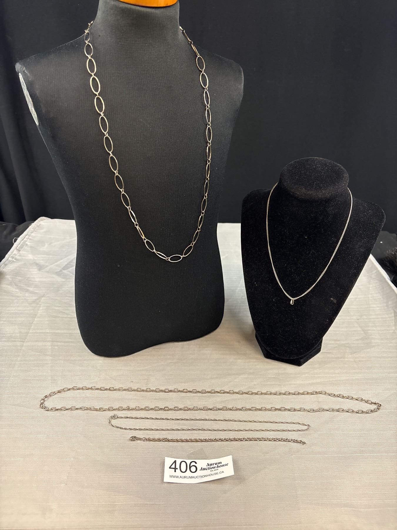 4 (Untested) Silver Tone Necklaces + Bracelets