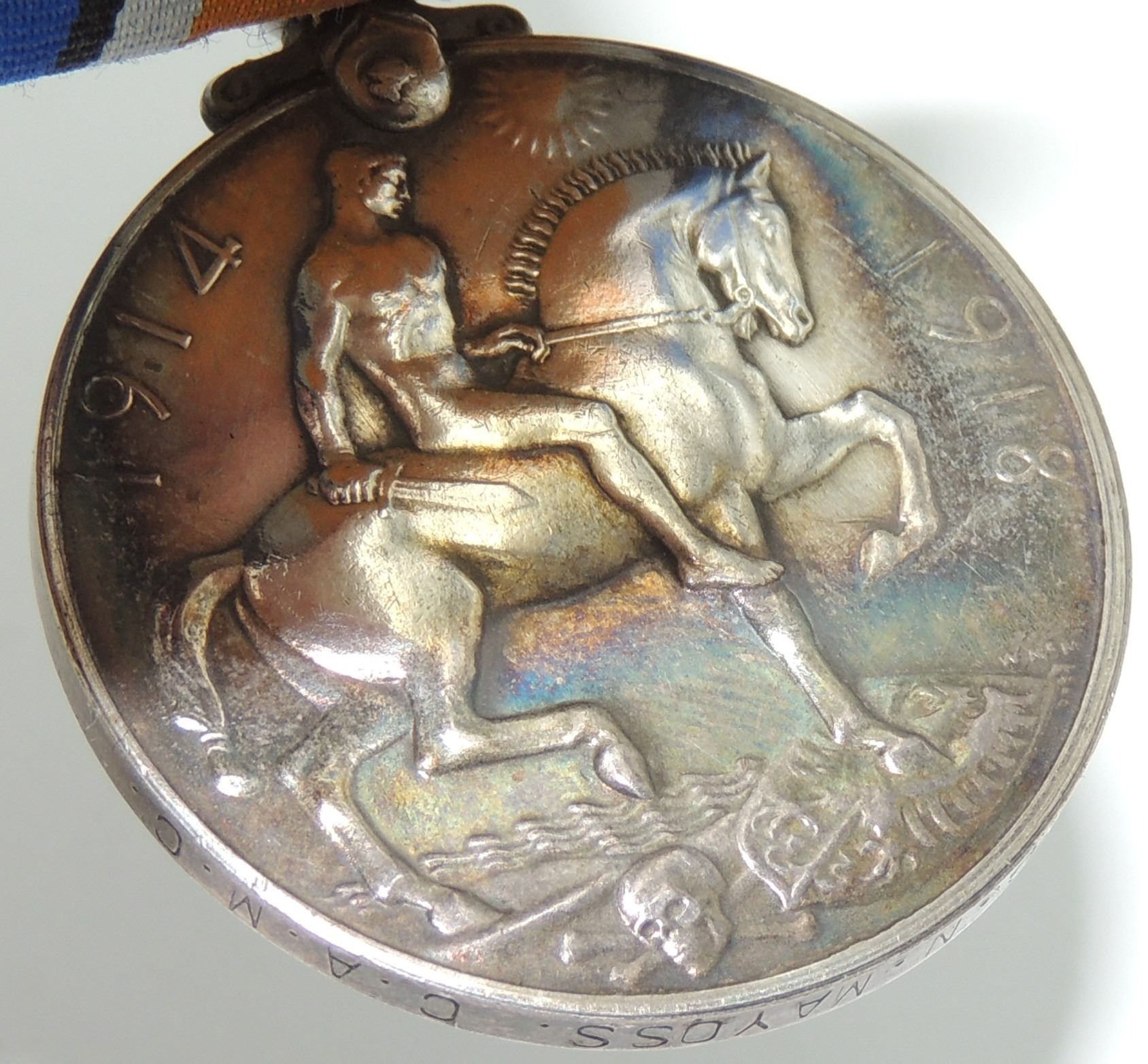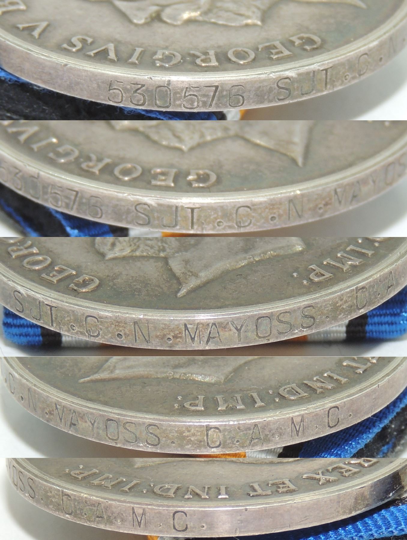 Silver War Medal 1914 1918 w/ King George V Obverse, named "53057 SJT. C.N. MAYOSS C.A.M.C."