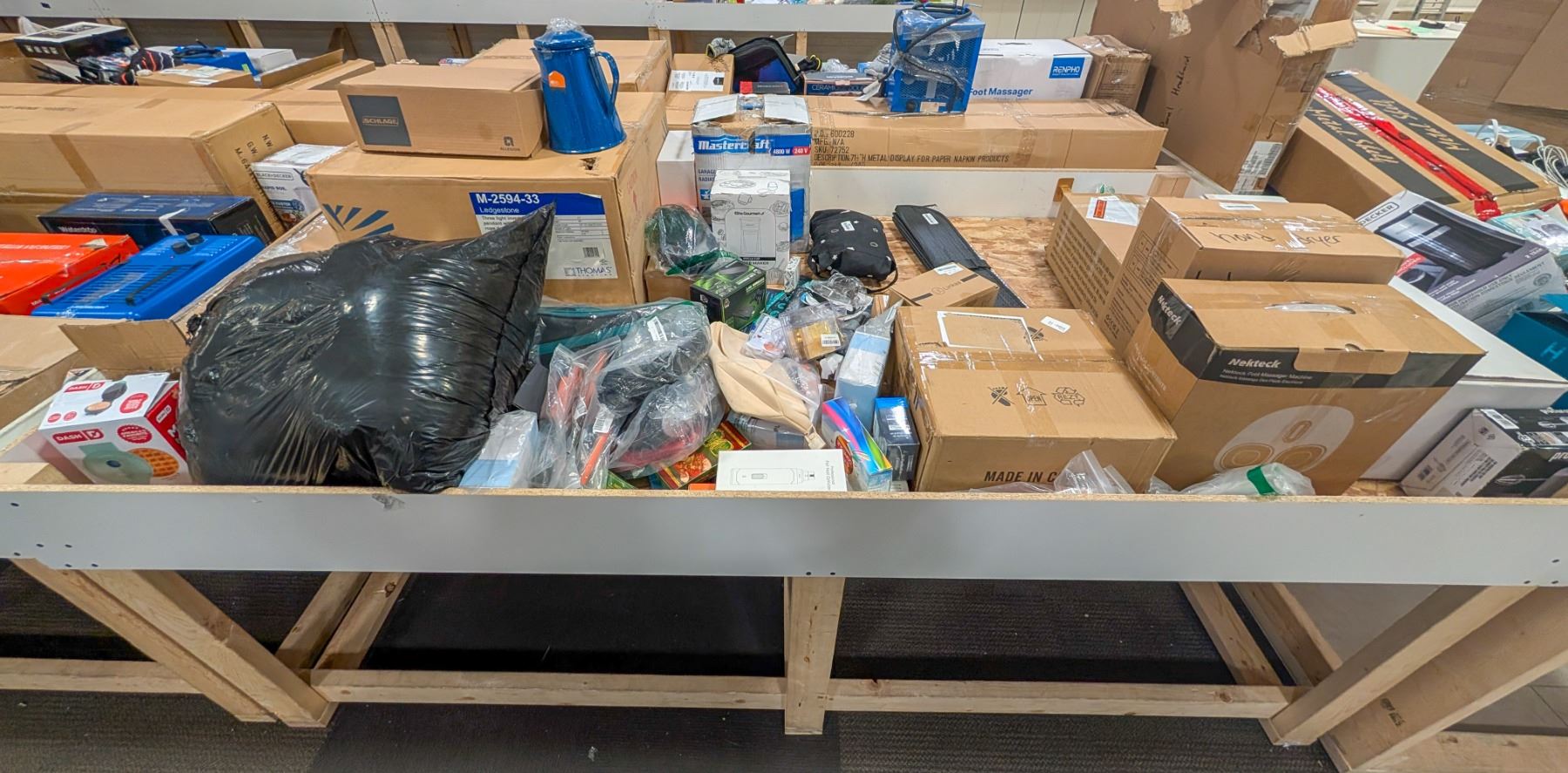 4' X 8' BIN OF ASSORTED LIQUIDATION ITEMS