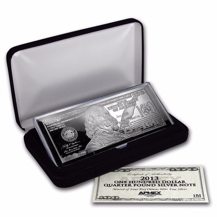 4 oz .999 Pure Silver Bar $100 Bill (W/Box & COA)