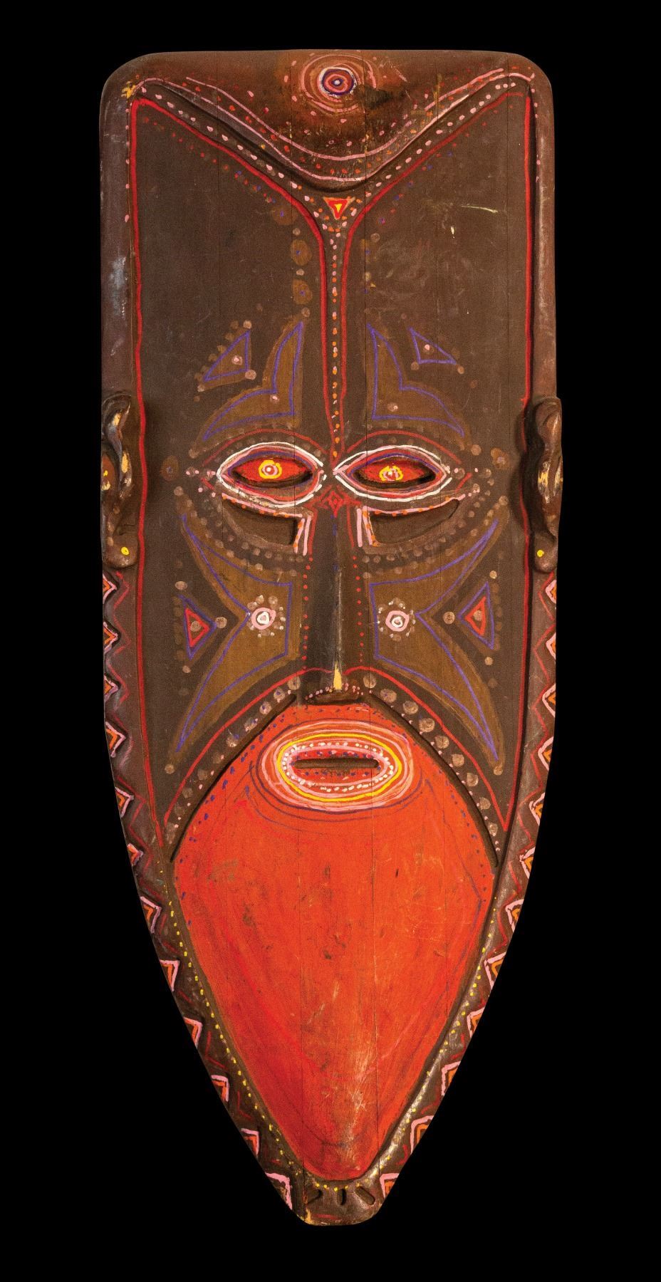 (1960s) This New Guinea wall mask maintains a nice patinated polychrome