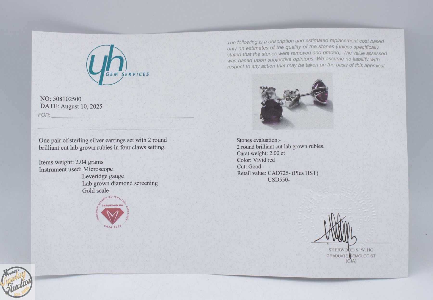 GROWN RUBIES STONE VVS VIVID RED COLOR SET IN HEAD SET IN 925 SILVER EARRINGS RETAIL VALUE $725.00 **ALL ITEMS MUST BE REMOVED BY 5PM SATURDAY, MAY 2ND 2026. ALL REMAINING ITEMS WILL BE SUBJECT TO A $6.00 PER DAY STORAGE CHARGE. ANY ITEMS REMAINING AFTER MONDAY, MAY 18TH 2026 WILL BE CONSIDERED FORFEITED. NO REFUNDS WILL BE ISSUED FOR FORFEITED ITEMS. TO SCHEDULE A PICK UP APPOINTMENT CLICK HERE