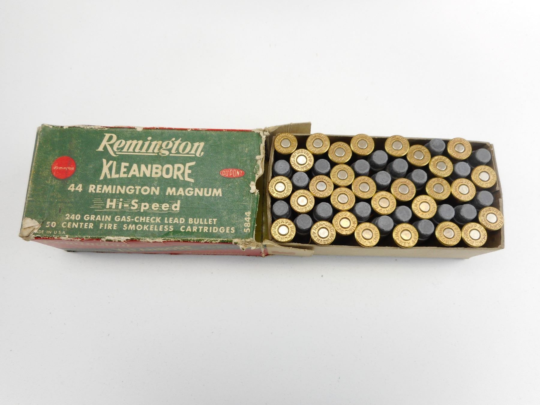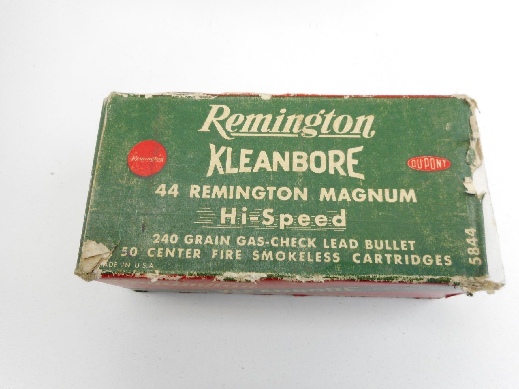 44 REMINGTON MAGNUM BY REM-UMC AMMO , 50 RNDS 44 REMINGTON MAGNUM IN VINTAGE REMINGTON-KLEANBORE BOX