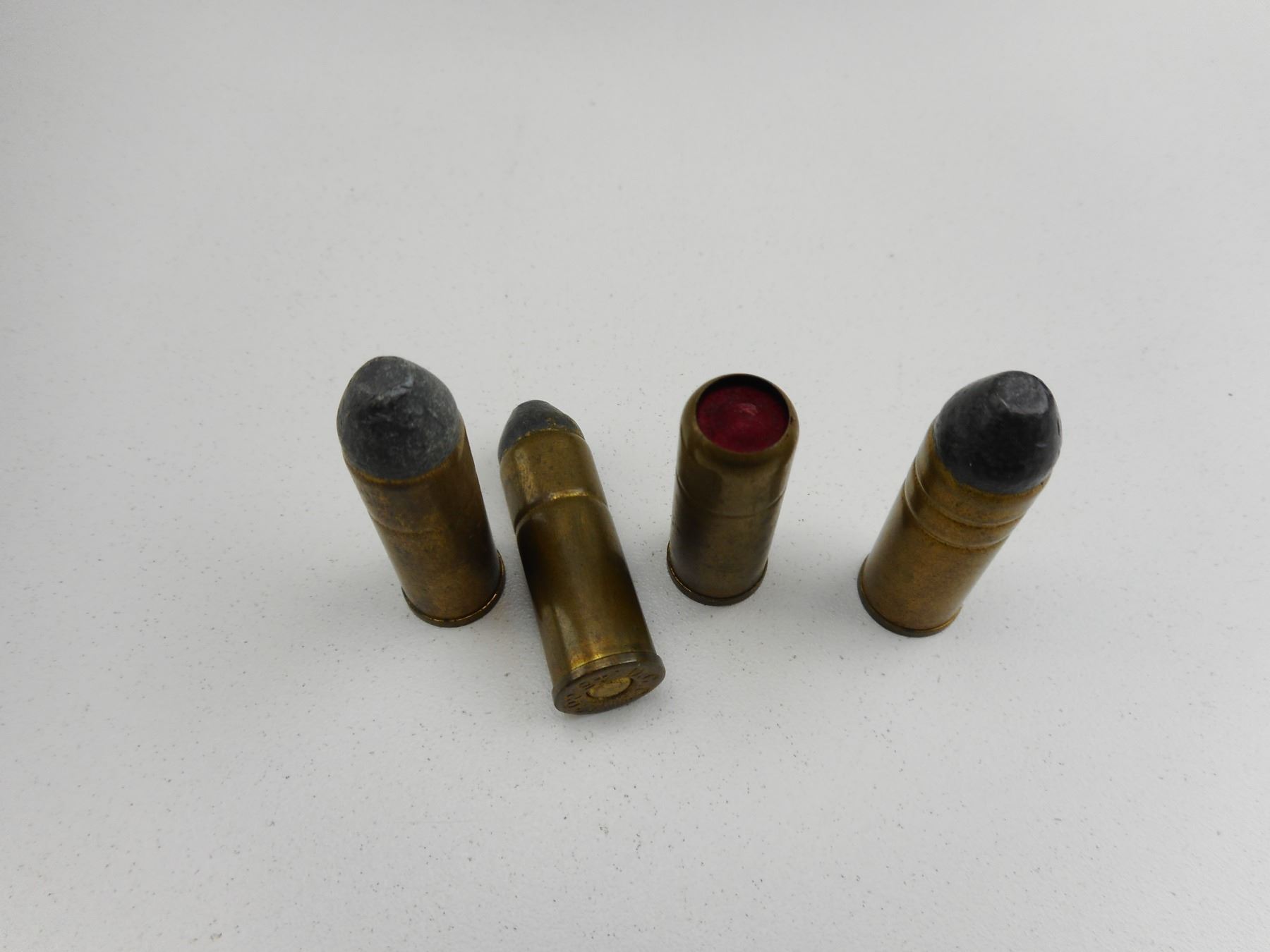 .45 COLT AMMO, BLANK , 3 RNDS .45 COLT AMMO, ONE BLANK. HEAD STAMPED D.C. CO. .45 COLT