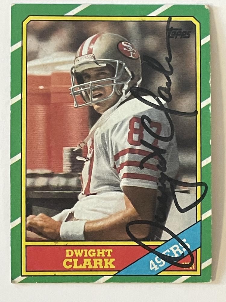 49ers Dwight Clark signed 1986 Topps #160 trading card. 2x3 inches