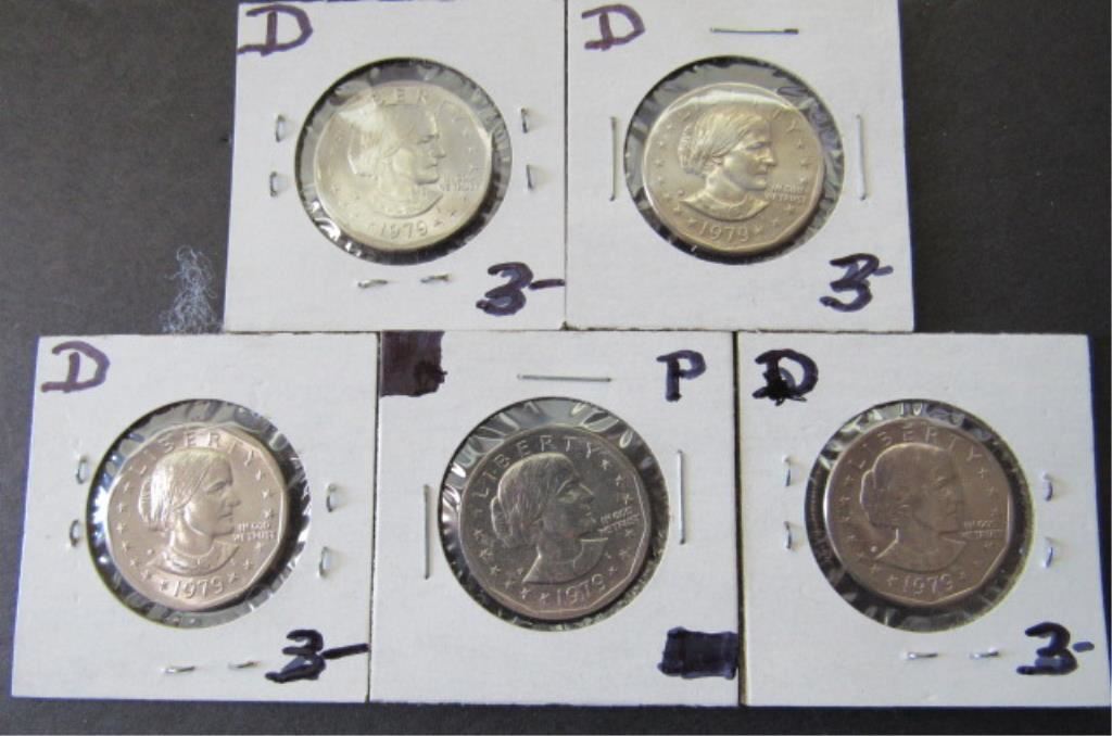 (5) 1979 Susan B. Anthony One Dollar Coins