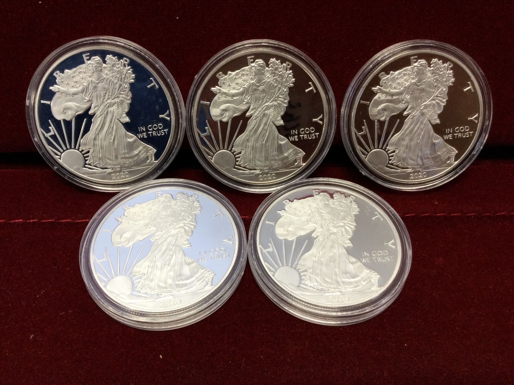 You are bidding on all 5 Proof Condition .999 Silver 1oz Eagles