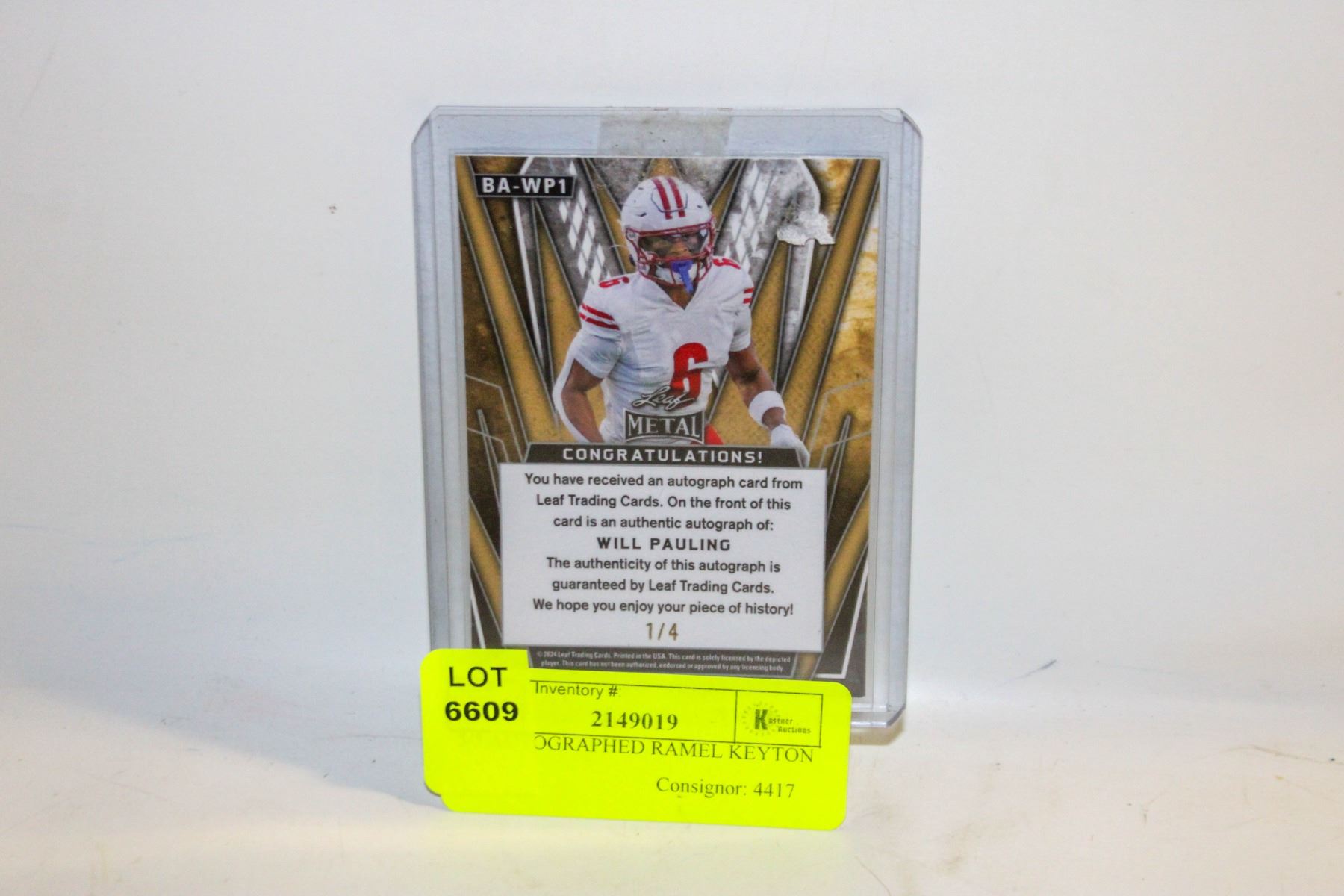 The auctioneer reserves the right to withdraw any lot at any time prior to the time of sale of such lot.