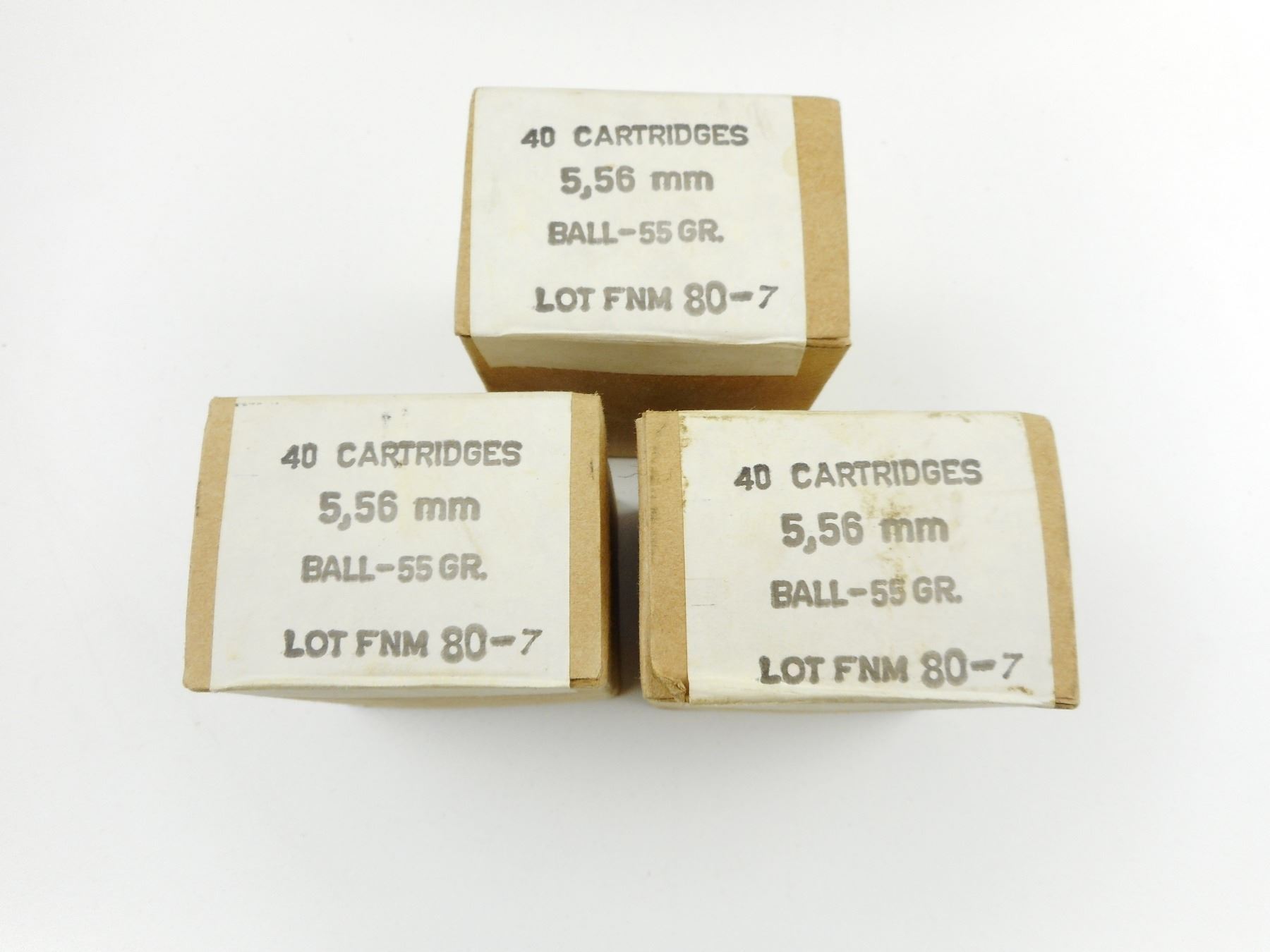 5.56MM AMMO , 120 RNDS 5.56MM AMMO, BALL-55 GRNS, LOT FNM 80-7