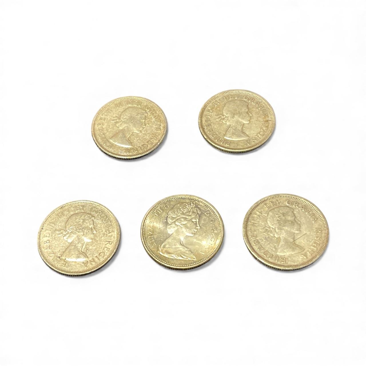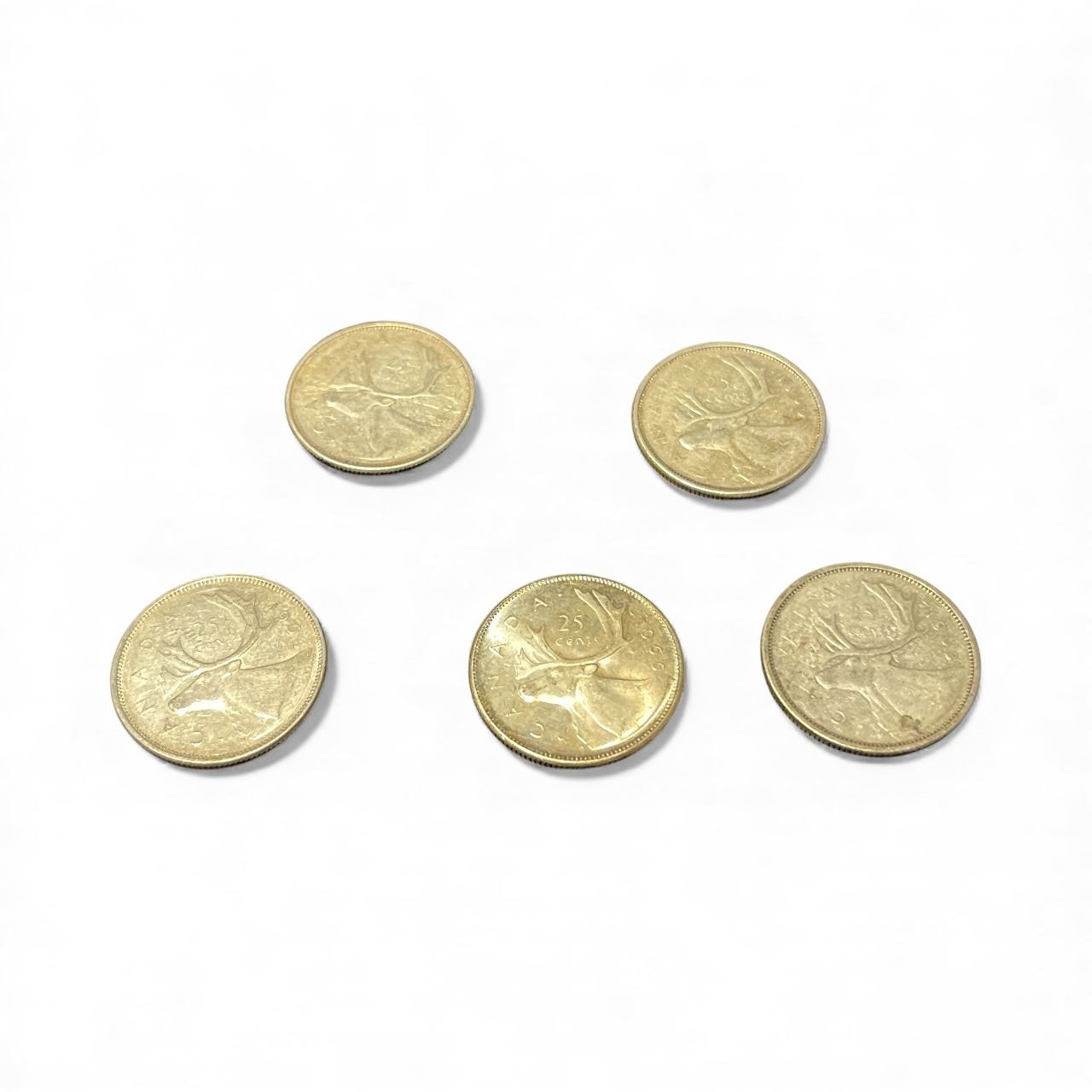 5 Canadian Silver Quarters - .800 Silver - Circulated (1960, 61, 63, and 2 x 66)