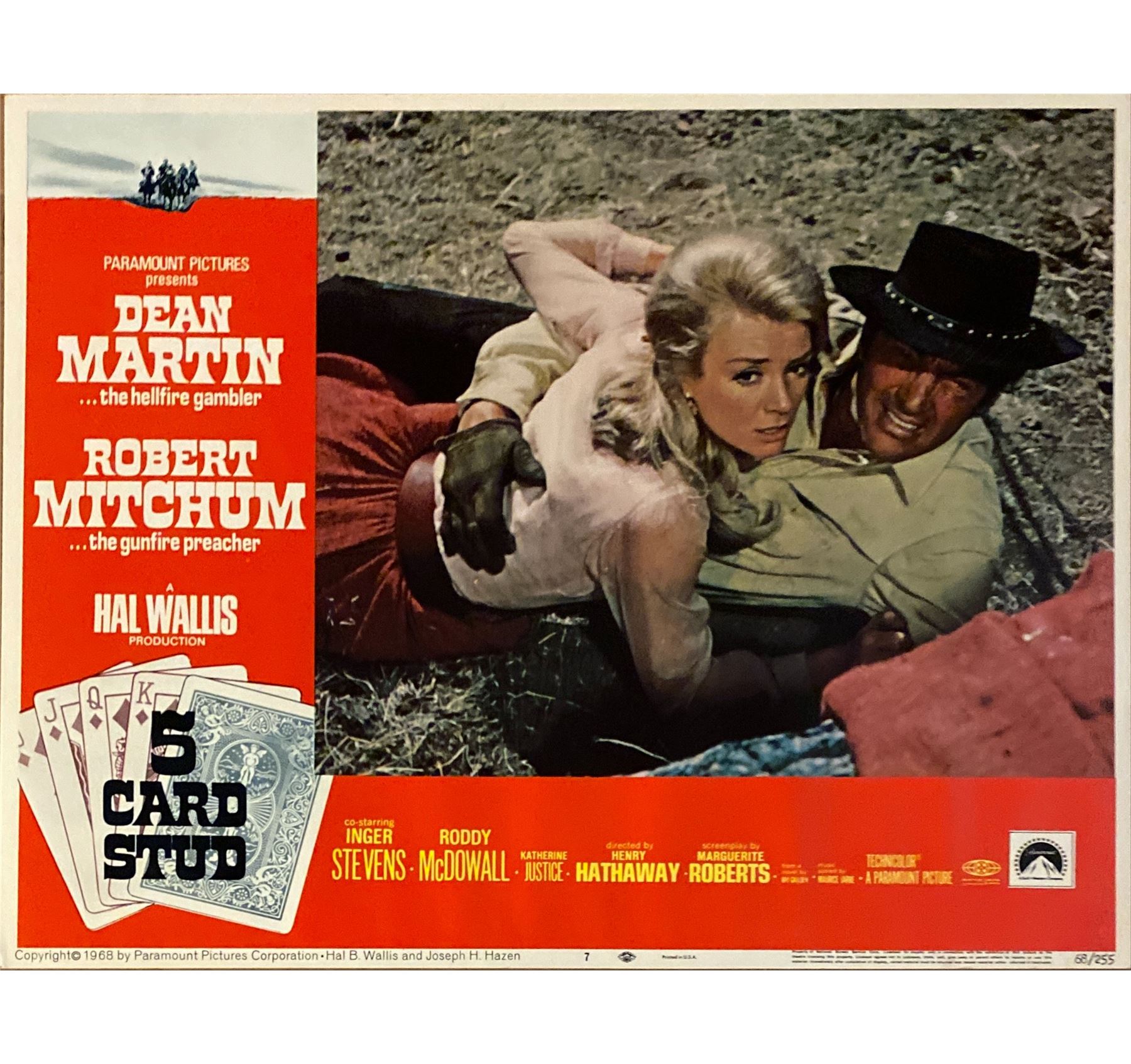 5 Card Stud original 1968 vintage lobby card on heavy card stock. 11X14 Inches
