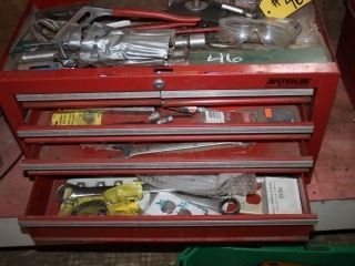 5 DRAWER TOOL BOX C/W WRENCHES, PUNCHES, PULLERS, PLIERS, SOCKETS