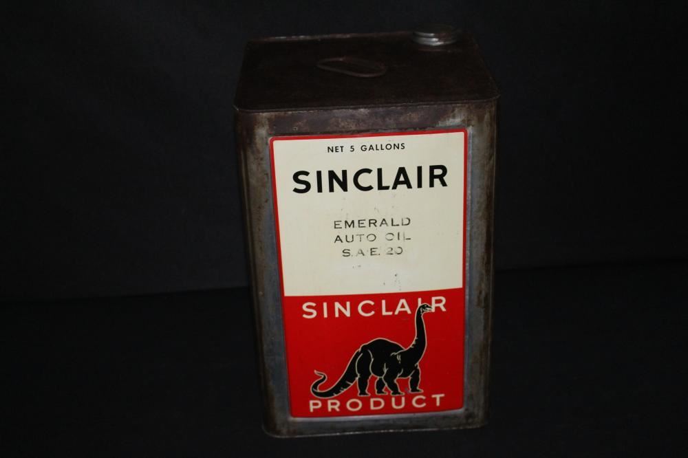 5 GAL OIL CAN SINCLAIR EMERALD AUTO OIL DINOSAUR